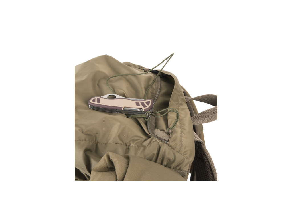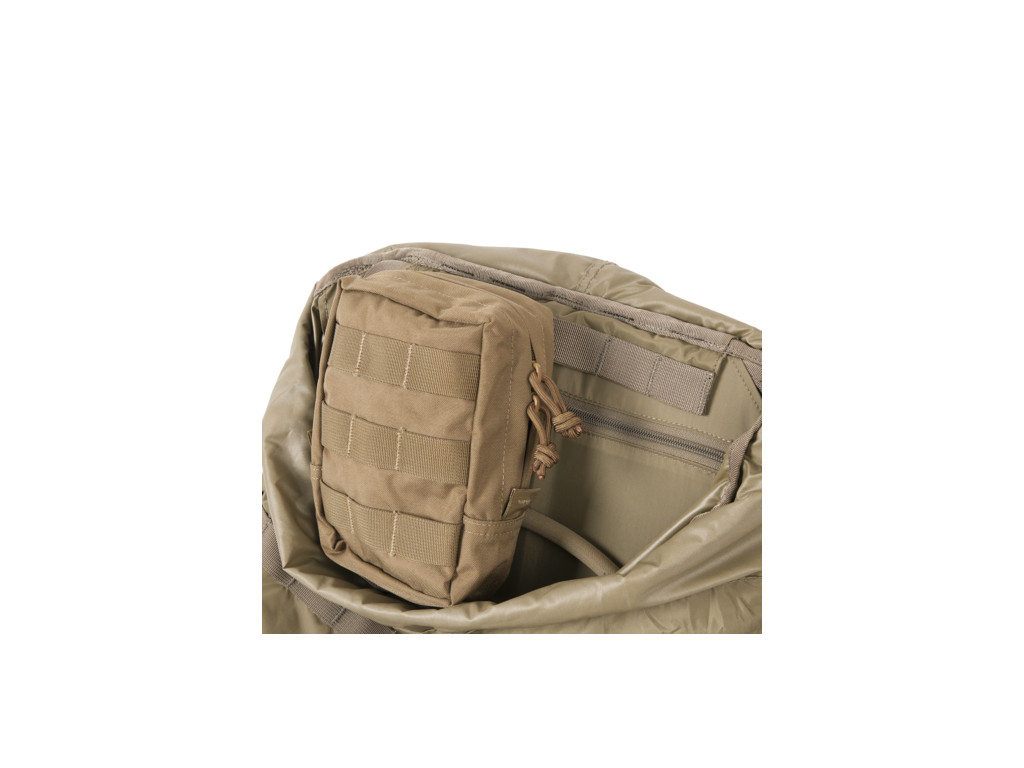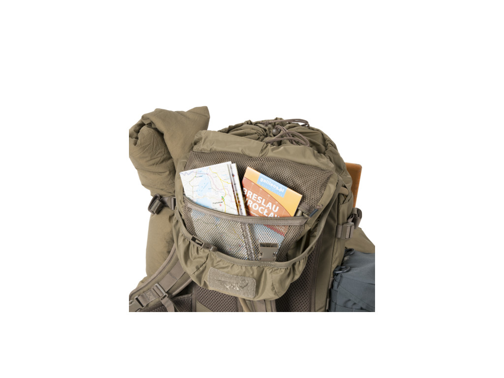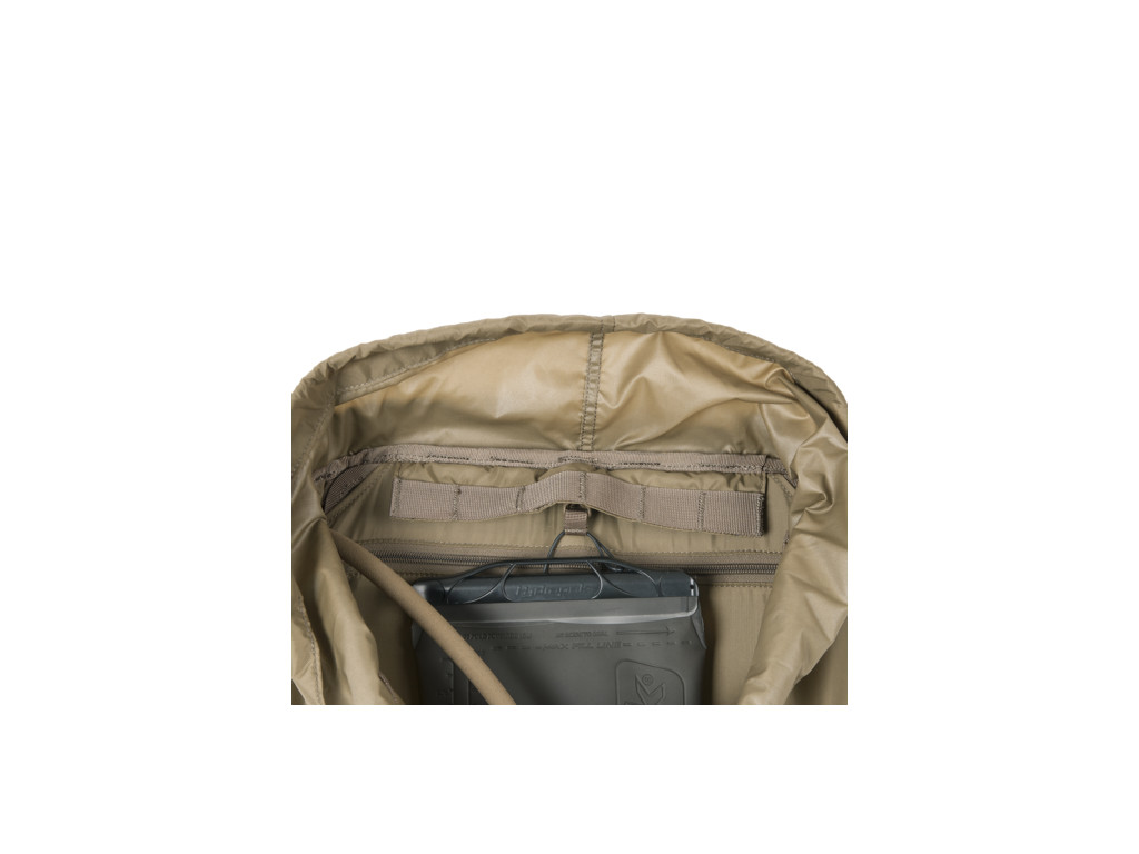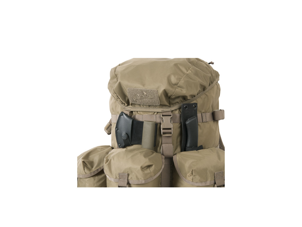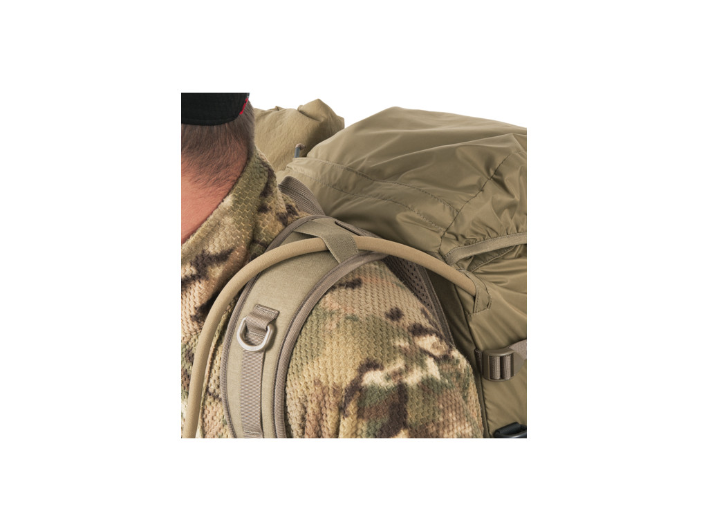 Další pruhy PALS vazby na bocích batohu umožňují připevnění dalších sumek, a kompresní popruhy zase upevnění např. karimatky nebo deky. Výstupy pro hadici hydratačního vaku najdeme také na obou stranách batohu.