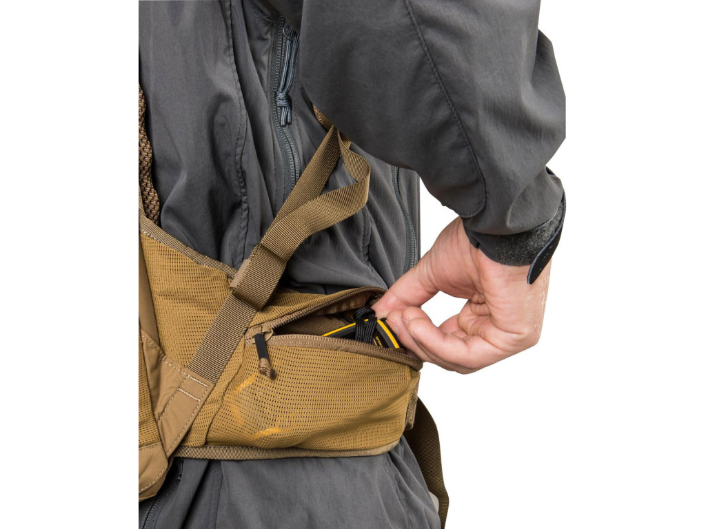 Ramenní popruhy batohu jsou polstrované a pokryté 3D síťovinou, což zajišťuje vysoký komfort při nošení. Pohodlný bederní pás je lehce polstrovaný a vybavený dvěma kapsami na malou elektroniku či doklady. Boky batohu jsou vybaveny MOLLE/PALS vazbou, která umožňuje rozšíření kapacity batohu o další kapsy, sumky a vybavení.