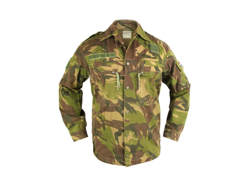 Originální vojenská blůza holandské armády v maskovacím vzoru DPM woodland. Na dotek velmi příjemný materiál, připomínající džínovinu. Přední díl a rukávy se zapínáním na druky. Šířka rukávu lze uzpůsobit. Kapsy v oblasti hrudi se zapínáním na zip.