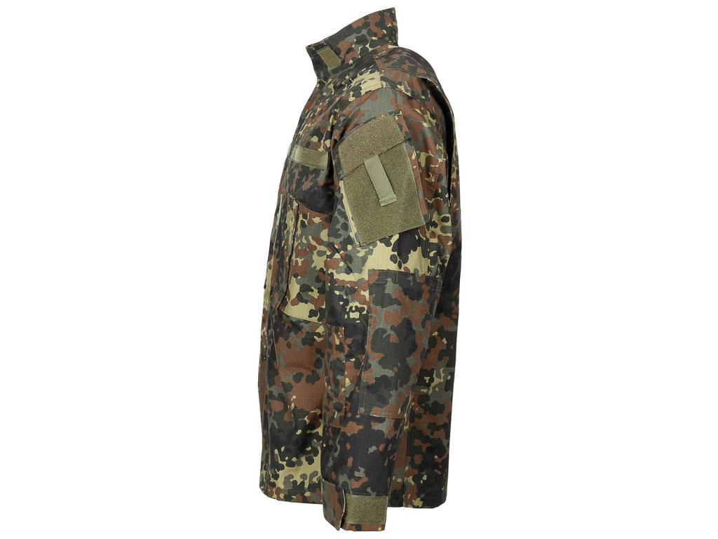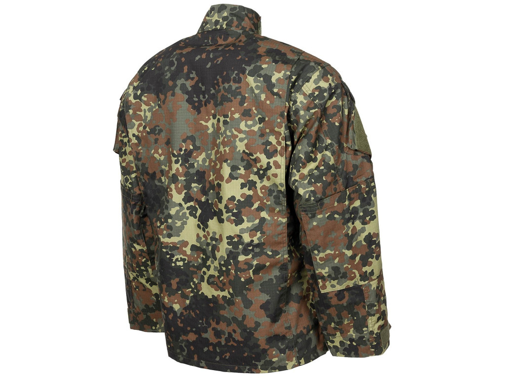 Polní blůza ACU (Army Combat Uniform) vychází z modelu, který v minulosti sloužil jako základní uniforma americké armády pro všechny typy nasazení. Je vyrobena z kvalitního materiálu Rip Stop, který lépe odolá proti roztržení. Blůza disponuje dvěma šikmo našitými náprsními kapsami s boční klopou a zapínáním na suchý zip. Dále má dvě skládané ramenní kapsy s patkou a suchým zipem, které jsou navíc vybaveny suchými zipy pro snadné připevnění nášivek. Na loktech jsou umístěny dvě speciální kapsy se suchým zipem, určené pro vložení volitelných chráničů loktů pro zvýšenou ochranu. Blůza je vybavena skrytým dvoucestným předním zipem s krycí légou na suchý zip, což zajišťuje spolehlivé a diskrétní zapínání. Stojáček s regulací šířky na suchý zip umožňuje individuální přizpůsobení. Dva záhyby na zádech pak poskytují větší volnost pohybu. Na hrudi jsou umístěny tři suché zipy, které slouží k připevnění jmenovek, hodností a dalších identifikačních nášivek. Manžety rukávů jsou nastavitelné na šířku pomocí suchého zipu.