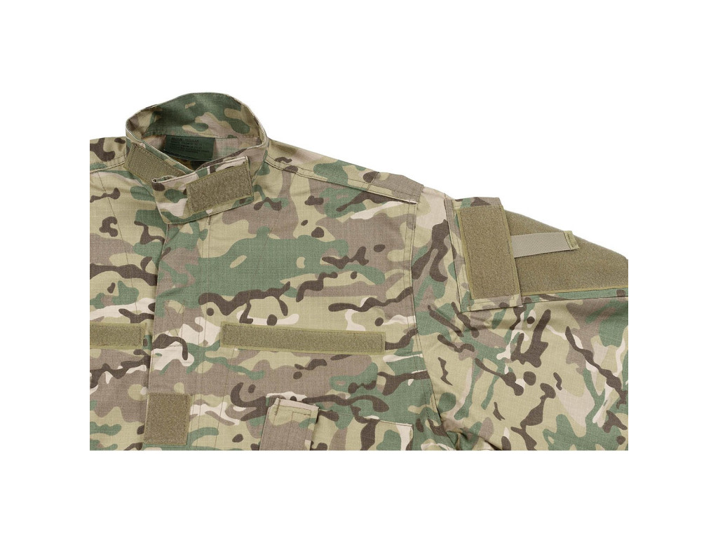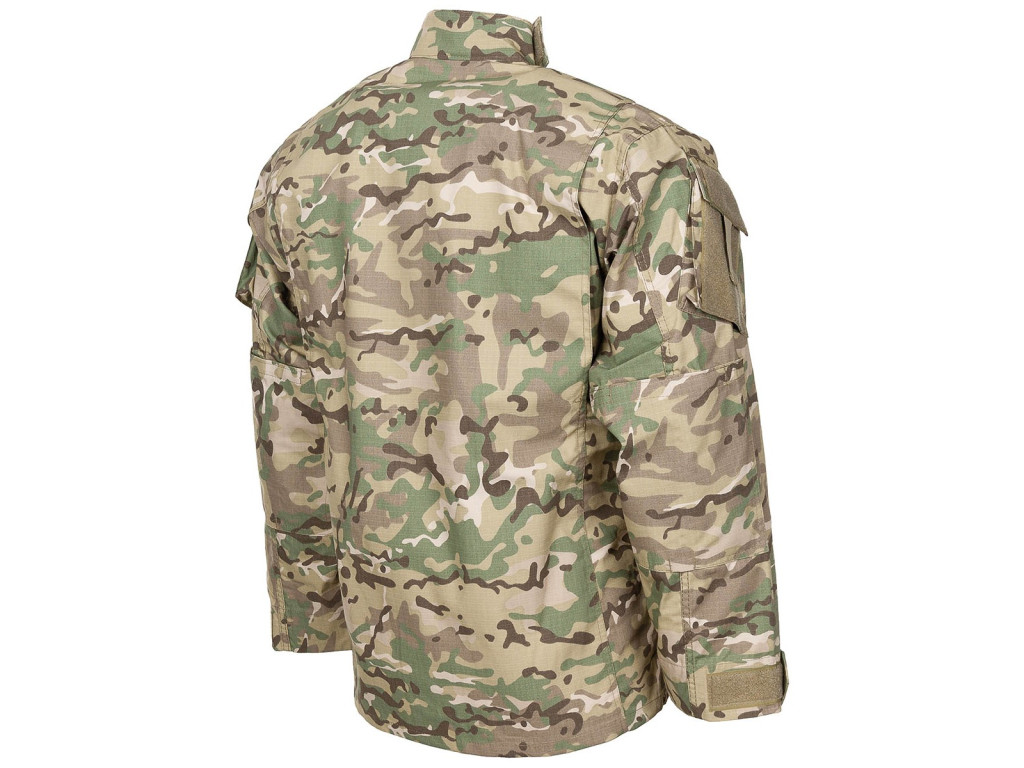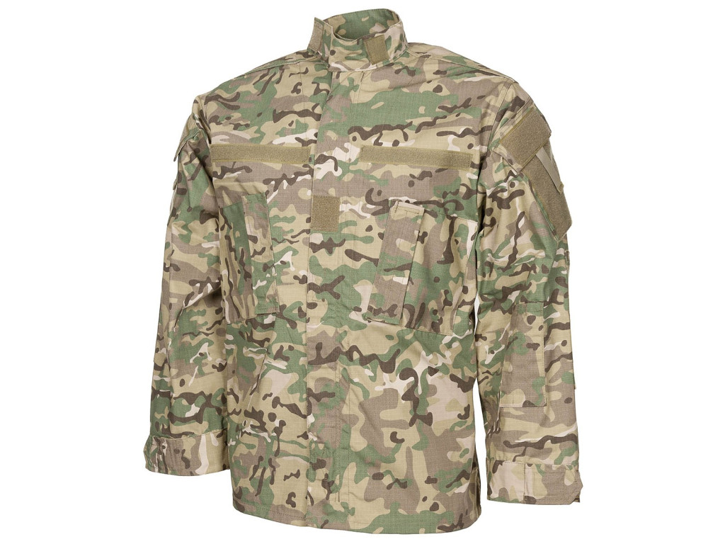 Polní blůza ACU (Army Combat Uniform) vychází z modelu, který v minulosti sloužil jako základní uniforma americké armády pro všechny typy nasazení. Je vyrobena z kvalitního materiálu Rip Stop, který lépe odolá proti roztržení. Blůza disponuje dvěma šikmo našitými náprsními kapsami s boční klopou a zapínáním na suchý zip. Dále má dvě skládané ramenní kapsy s patkou a suchým zipem, které jsou navíc vybaveny suchými zipy pro snadné připevnění nášivek. Na loktech jsou umístěny dvě speciální kapsy se suchým zipem, určené pro vložení volitelných chráničů loktů pro zvýšenou ochranu. Blůza je vybavena skrytým dvoucestným předním zipem s krycí légou na suchý zip, což zajišťuje spolehlivé a diskrétní zapínání. Stojáček s regulací šířky na suchý zip umožňuje individuální přizpůsobení. Dva záhyby na zádech pak poskytují větší volnost pohybu. Na hrudi jsou umístěny tři suché zipy, které slouží k připevnění jmenovek, hodností a dalších identifikačních nášivek. Manžety rukávů jsou nastavitelné na šířku pomocí suchého zipu.