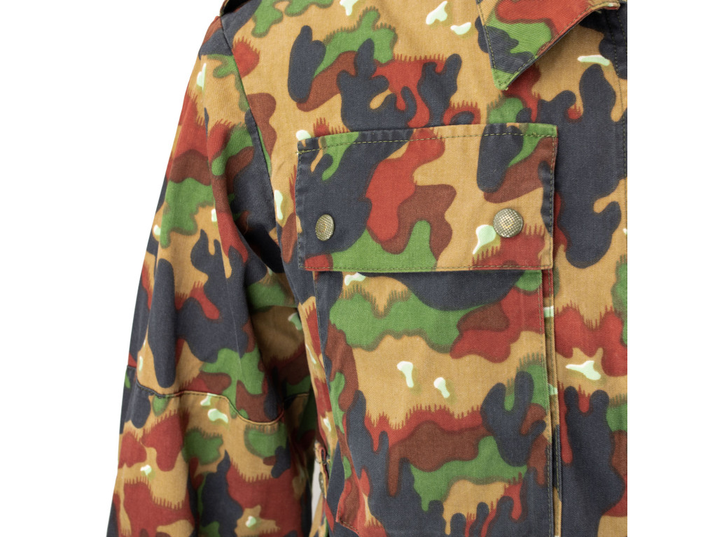 Švýcarská armádní blůza vzor 83, známá také pod označením TAZ 83 (Tenue d'Assaut 83) nebo přezdívkou "Alpenflage", má zajímavou historii i design. Vzor TAZ 83 je výrazný, s neobvyklou kombinací barev. Na první pohled se zdá být velmi jasný (obsahuje výraznou červenou), ale ve skutečnosti byl navržen tak, aby účinně maskoval v alpském terénu a v zastavěných oblastech. Blůza je vyrobena z odolné směsi bavlny a polyesteru v poměru 50/50, která je odolná vůči větru a mírnému dešti.