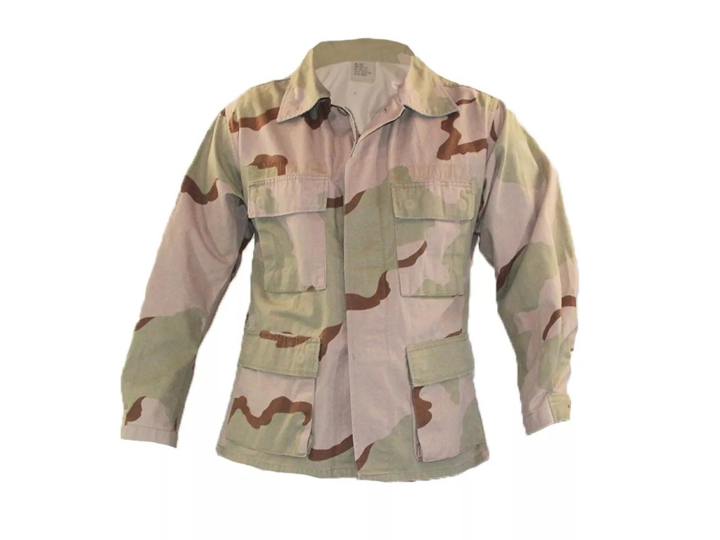 Originální blůza BDU (Battle Dress Uniform) v maskovacím vzoru 3-color desert, který byl vyvinut speciálně pro operace v pouštních podmínkách. Tento vzor nahradil dřívější 6-barevný "chocolate chip" a stal se ikonickým díky nasazení amerických vojáků v konfliktech v Iráku a Afghánistánu na přelomu tisíciletí.