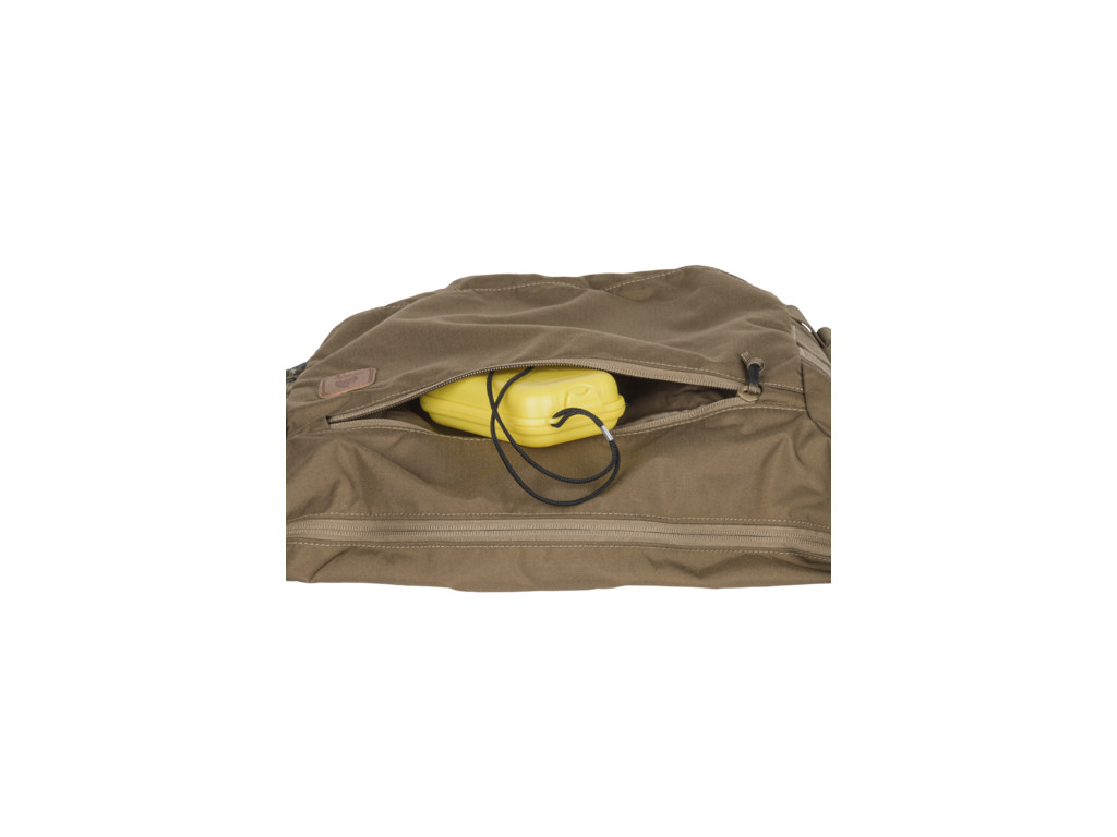 Velká bushcraftová taška vhodná k jednodenním výpravám do přírody. Brašna je opatřena 5 cm širokým stavitelným popruhem. Kromě hlavní kapsy má další dvě menší kapsy určené na drobnější předměty. Jedna z kapes je přístupná z vnější strany, druhá je umístěna v hlavní kapse a funguje jako organizér na drobnosti. Uvnitř hlavní kapsy jsou na obou stranách další kapsy.