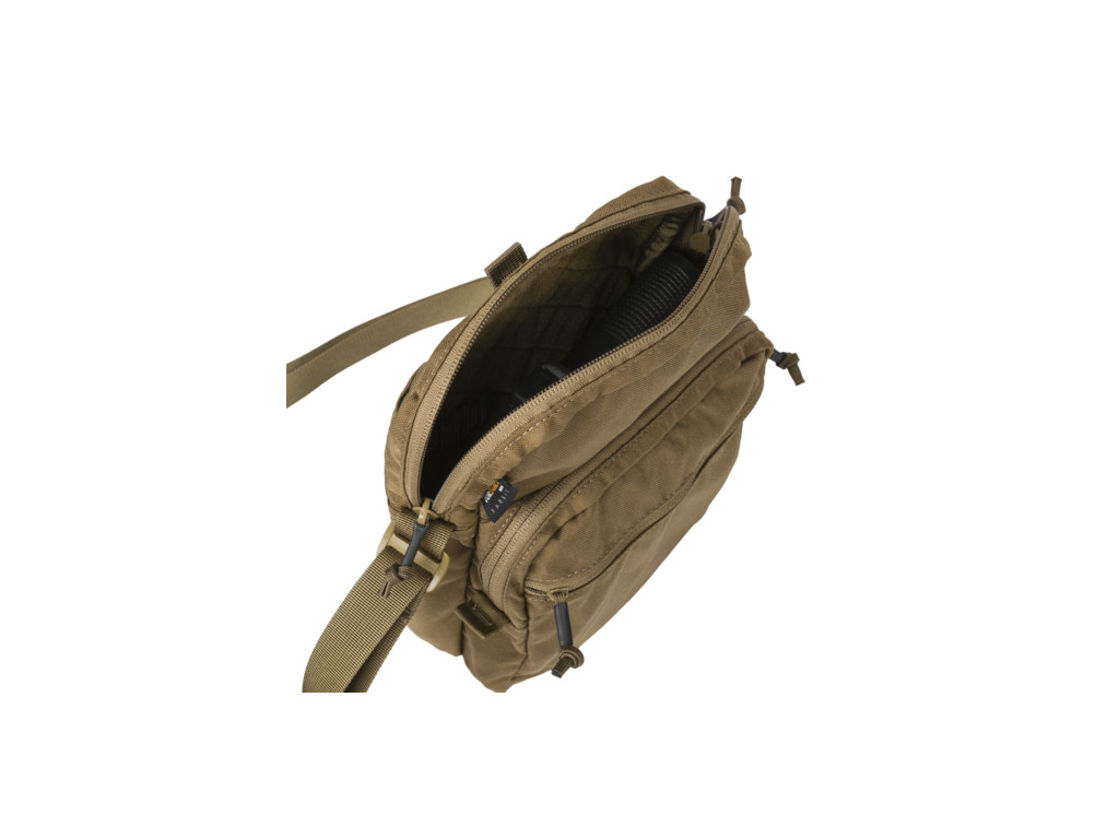 Interiér kompatibilní s VIS® Vám také umožní použít četné doplňkové vložky ze sortimentu Helikon-Tex. Organizér v přední kapse na zip udrží drobné předměty na svém místě. Na zadní straně je navíc plochá kapsa na suchý zip. Taška je vybavena 25 mm širokým nastavitelným ramenním popruhem.