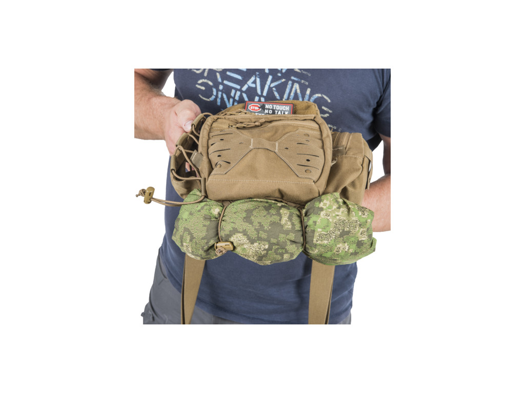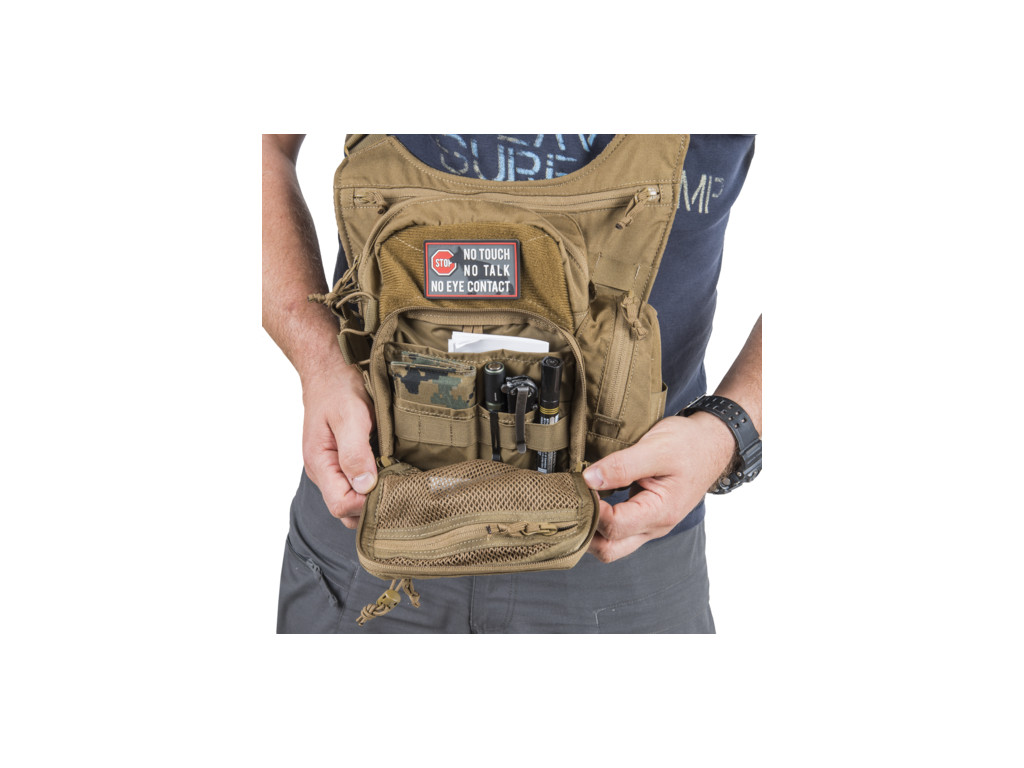 Taška / batoh přes rameno EDC je kompaktní, univerzální zavazadlo na každodenní nošení. Taška má prostorný úložný prostor pro větší věci a několik menších kapes ve vnitřním organizéru. Na boku tašky najdete malou kapsu na nezbytnosti a univerzální držák lahví. Přední stranu pokrývá laserem vyřezávaná MOLLE / PALS vazba pro připojení dalšího volitelného vybavení. EDC taška disponuje i malou skrytou kapsou vhodnou na nošení zbraně služební velikosti.