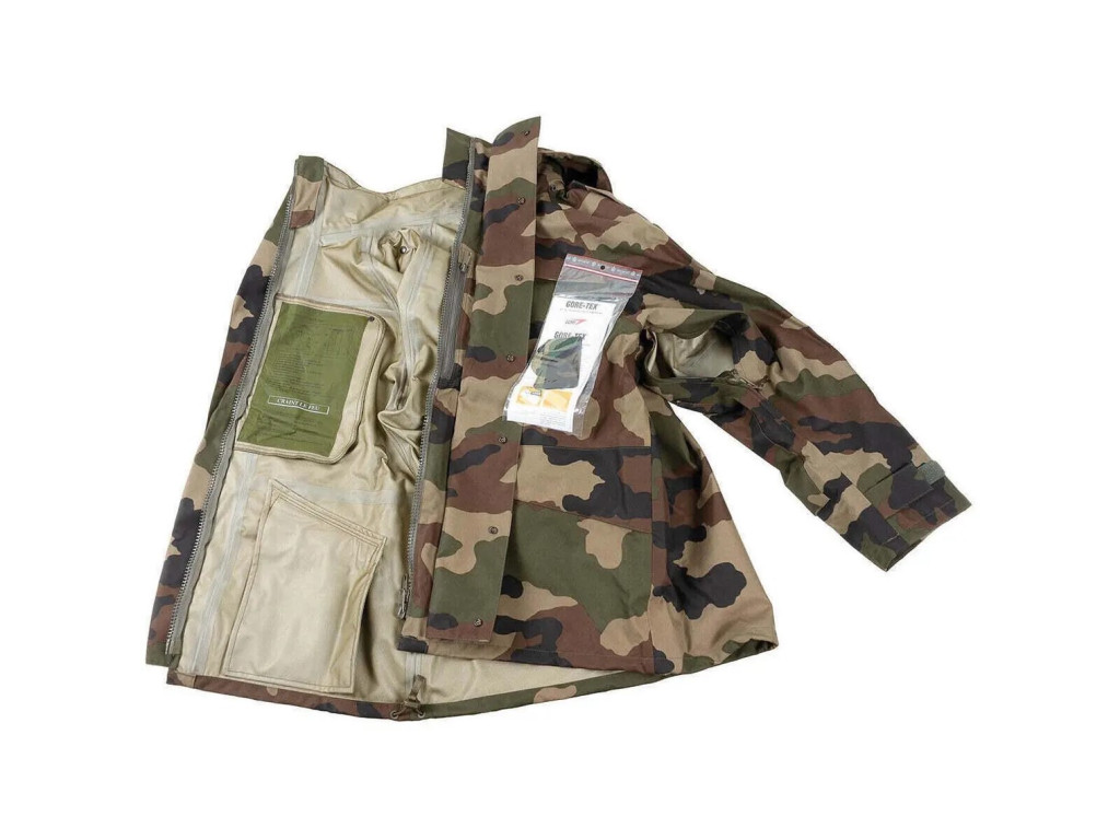 Originální bunda francouzské armády v maskovacím vzoru CCE cam, navržená jako spolehlivá ochrana proti vlhkosti a větru. Je vyrobena z prodyšného třívrstvého laminátu a představuje robustní a funkční součást vojenské výstroje. Tato bunda je velmi kvalitně zpracovaná, odolná a robustní, ideální pro outdoorové aktivity nebo náročné pracovní prostředí.