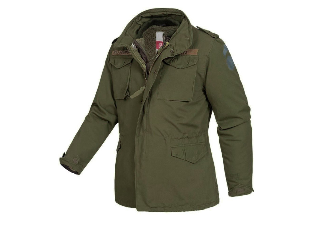 Legendární klasická bunda americké armády (model z roku 1965) v moderním provedení. Bunda Surplus M65 Regiment poskytuje stejné pohodlí osvědčeného střihu, praktičnosti zapínání, rozměrných kapes a kapuce v límci, na rozdíl od původní verze je však přímo vybavena odepínatelnou vložkou z umělé kožešiny a zhotovena z příjemné bavlny s patinou (z výroby lehce opraným vzhledem). Autenticitu podtrhuje zašití dvou falešných trhlin vpředu na pravé horní kapse a na konci levého rukávu a rovněž uměle vytvořené stíny po jakoby odpáraných nášivkách.