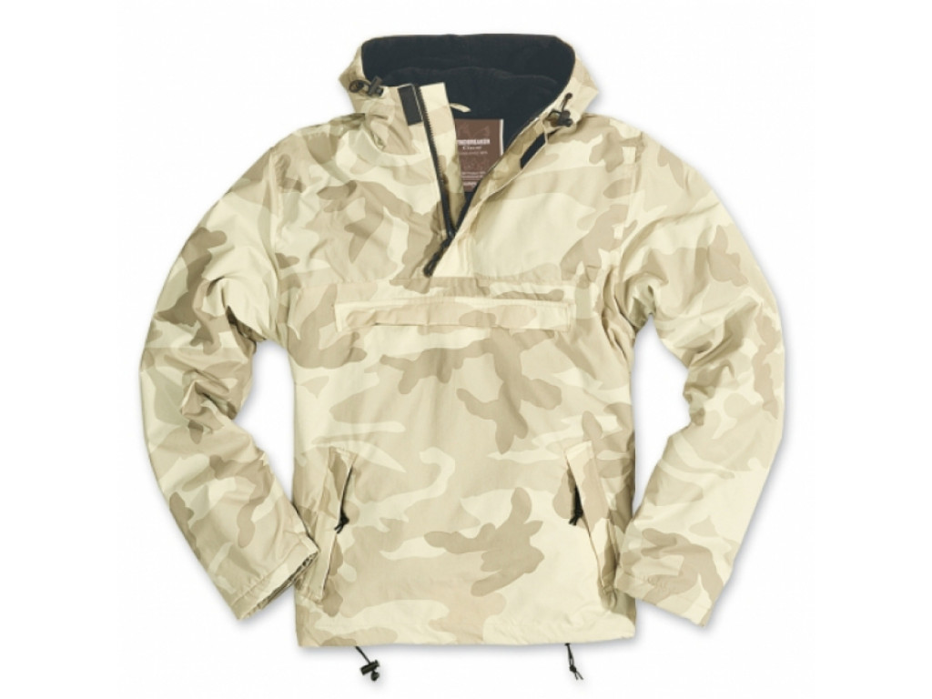 Větrovka v moderním funkčním provedení od německé firmy Surplus. Má krátký zip na dopnutí, obléká se tak přes hlavu. Je vyrobena z prodyšného avšak zároveň vodoodpudivého a větruodolného materiálu. Uvnitř je zateplena fleecovou podšívkou. Bunda má také kapuci s tkanicemi na stažení. V pase lze bundu částečně stáhnout tkanicí, které je po pravé straně. Rukávy lze stáhnout páskem na suchý zip.