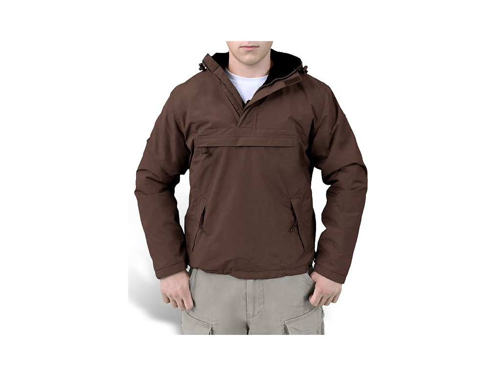 Větrovka v moderním funkčním provedení od německé firmy Surplus. Má krátký zip na dopnutí, obléká se tak přes hlavu. Je vyrobena z prodyšného avšak zároveň vodoodpudivého a větruodolného materiálu. Uvnitř je zateplena fleecovou podšívkou. Bunda má také kapuci s tkanicemi na stažení. V pase lze bundu částečně stáhnout tkanicí, které je po pravé straně. Rukávy lze stáhnout páskem na suchý zip.
