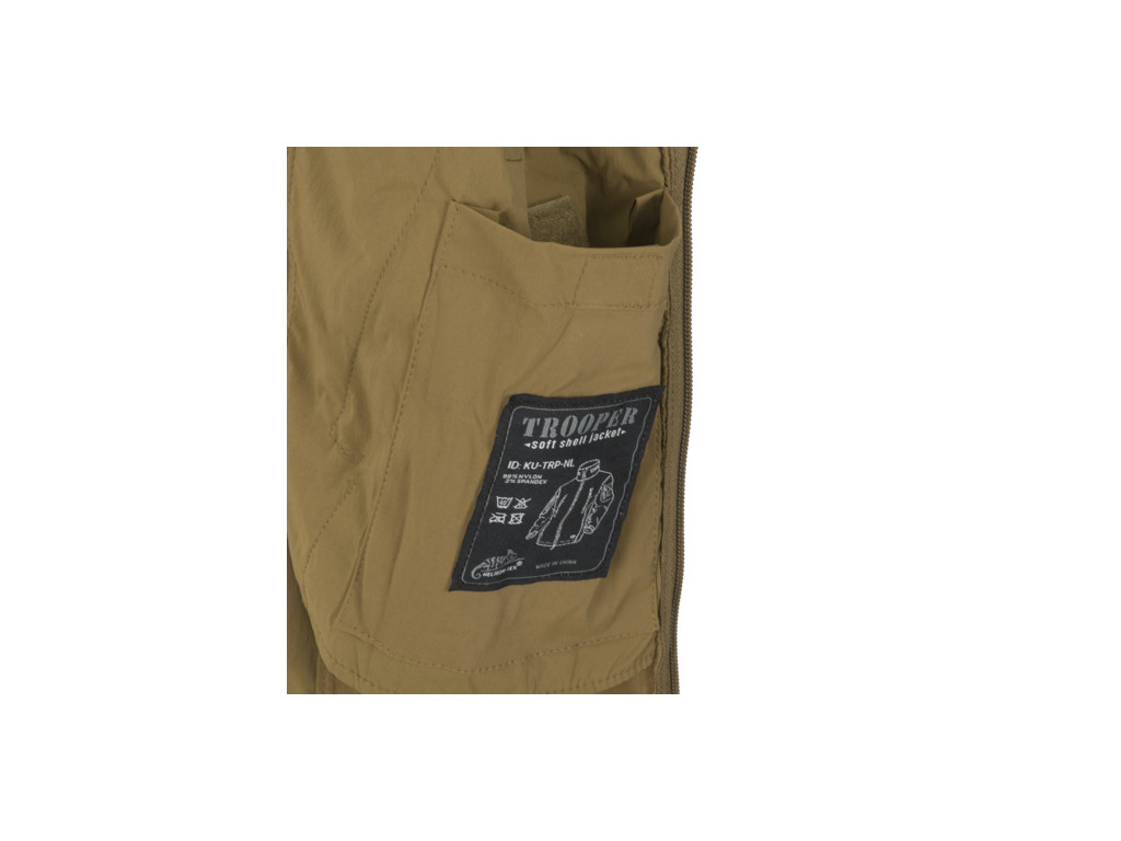 Lehká softshellová bunda TROOPER poskytuje výbornou ochranu proti větru a dešti. Skladná bunda zabere velmi malé množství prostoru. Kapuci lze snadno nastavit bez vyndání rukou z kapes pomocí dvou šňůrek umístěných v obou náprsních kapsách. Na vnější straně je bunda potažená Teflonem® DuPont™, který chrání před nečistotami a vodou.
