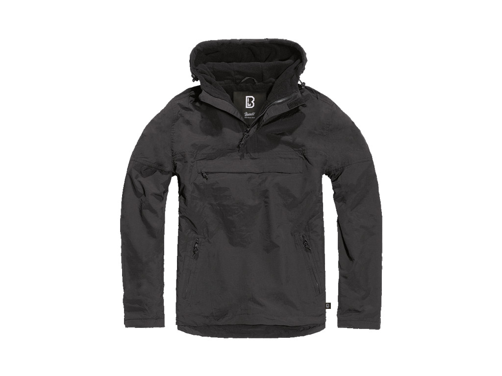 Pro uložení nezbytností je k dispozici velká náprsní kapsa na zip a dvě šikmé boční kapsy. Kapuce je vybavena stahovacími šňůrkami a u krku je zajištěna mini-zipem se suchým zipem. Tato bunda od značky Brandit je ideální volbou pro deštivé dny a nepříznivé počasí.