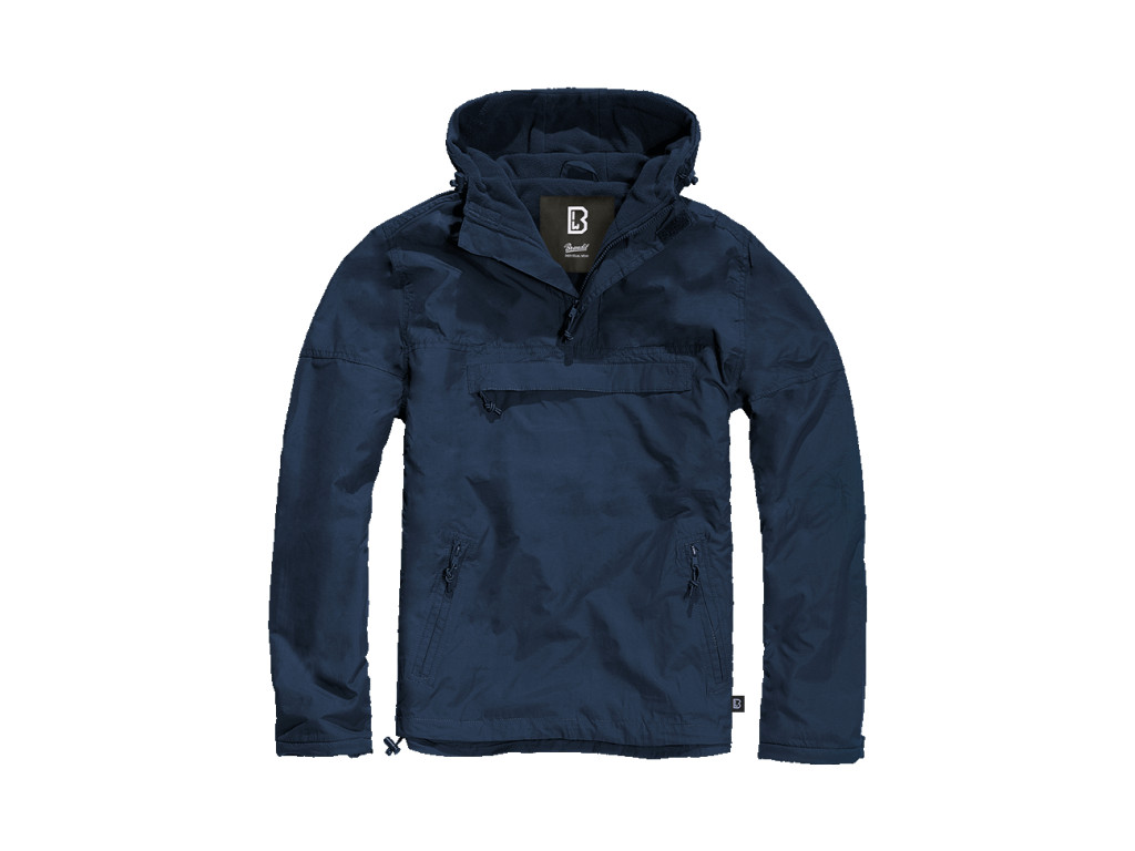 Pro uložení nezbytností je k dispozici velká náprsní kapsa na zip a dvě šikmé boční kapsy. Kapuce je vybavena stahovacími šňůrkami a u krku je zajištěna mini-zipem se suchým zipem. Tato bunda od značky Brandit je ideální volbou pro deštivé dny a nepříznivé počasí.
