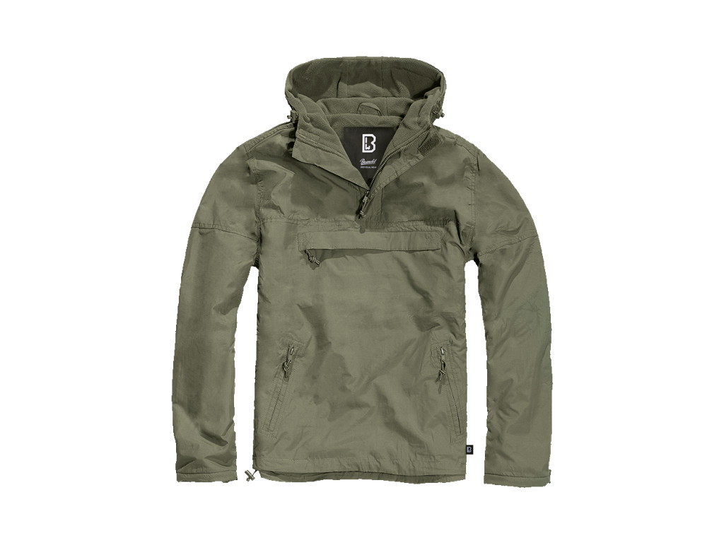 Pro uložení nezbytností je k dispozici velká náprsní kapsa na zip a dvě šikmé boční kapsy. Kapuce je vybavena stahovacími šňůrkami a u krku je zajištěna mini-zipem se suchým zipem. Tato bunda od značky Brandit je ideální volbou pro deštivé dny a nepříznivé počasí.