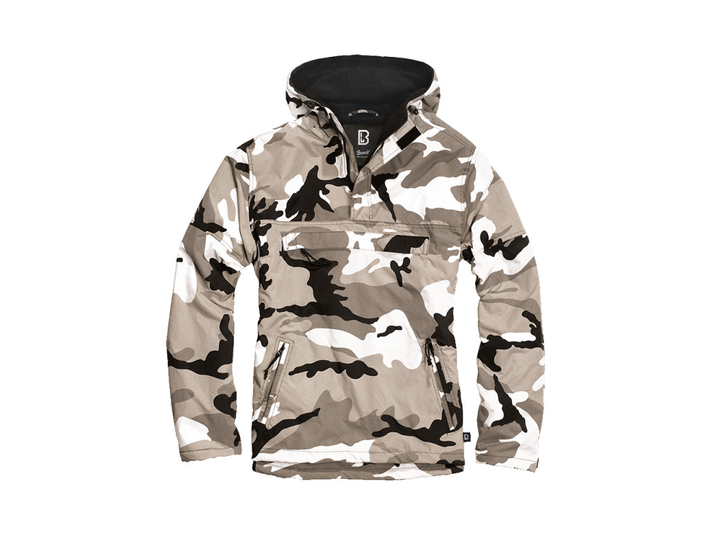 Tato větrovka představuje vynikající štít proti větru a dešti, a to díky vnější vrstvě z nepromokavého a vodoodpudivého nylonu. Komfort při nošení zvyšuje měkká a prodyšná fleecová podšívka, která pokrývá jak vnitřek kapuce, tak i zbytek bundy. Pro individuální přizpůsobení postavě slouží stahovací pásky umístěné v kapuci a v úrovni boků. Snadné oblékání a svlékání zajišťuje praktický boční zip. Dalším praktickým prvkem jsou suché zipy na zápěstích, které umožňují variabilní nastavení obvodu manžet.Pro uložení nezbytností je k dispozici velká náprsní kapsa na zip a dvě šikmé boční kapsy. Kapuce je vybavena stahovacími šňůrkami a u krku je zajištěna mini-zipem se suchým zipem. Tato bunda od značky Brandit je ideální volbou pro deštivé dny a nepříznivé počasí.
