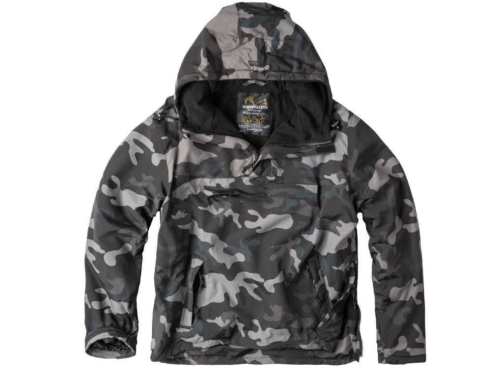 Větrovka v moderním funkčním provedení od německé firmy Surplus. Má krátký zip na dopnutí, obléká se tak přes hlavu. Je vyrobena z prodyšného avšak zároveň vodoodpudivého a větruodolného materiálu. Uvnitř je zateplena fleecovou podšívkou. Bunda má také kapuci s tkanicemi na stažení. V pase lze bundu částečně stáhnout tkanicí, které je po pravé straně. Rukávy lze stáhnout páskem na suchý zip.