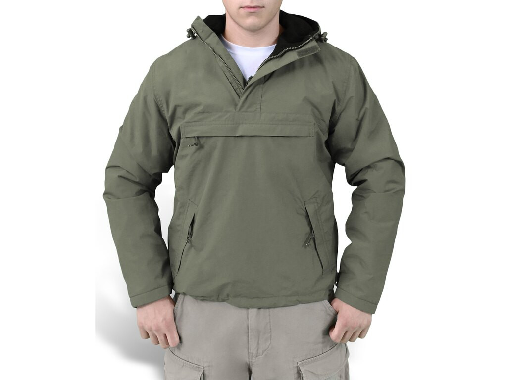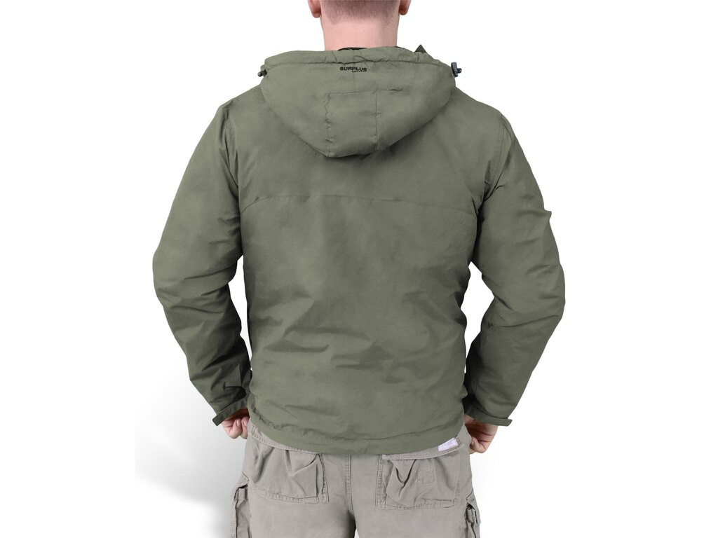 Větrovka v moderním funkčním provedení od německé firmy Surplus. Má krátký zip na dopnutí, obléká se tak přes hlavu. Je vyrobena z prodyšného avšak zároveň vodoodpudivého a větruodolného materiálu. Uvnitř je zateplena fleecovou podšívkou. Bunda má také kapuci s tkanicemi na stažení. V pase lze bundu částečně stáhnout tkanicí, které je po pravé straně. Rukávy lze stáhnout páskem na suchý zip.