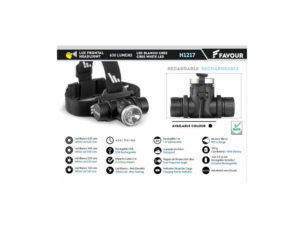 Čelovka Favour - H1217 LED dobíjecí 630LM voděodolná