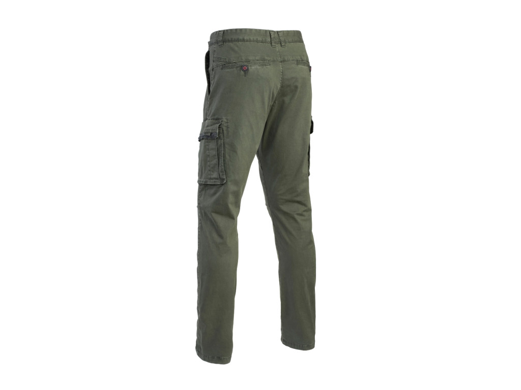 Pohodlné a praktické cargo kalhoty se dvěma předními kapsami se zesílenými okraji, dvěma prostornými bočními kapsami a dvěma zadními kapsami se zapínáním na knoflík.