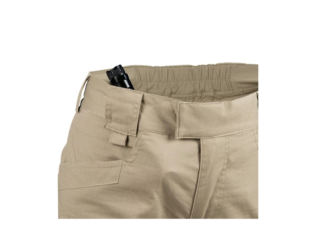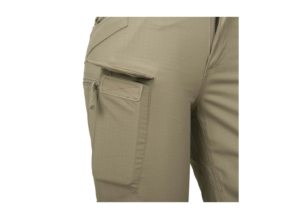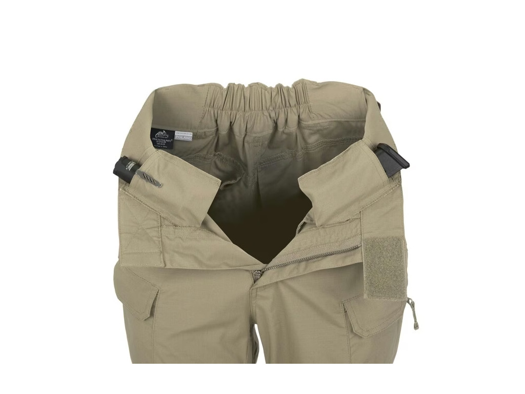 Dámské kalhoty Helikon UTP® (Urban Tactical Line) jsou navrženy tak, aby dokonale sedli na dámskou postavu. Součástí kalhot je pružná guma v oblasti kříže a elastický pás se suchým zipem pro přizpůsobení na každý typ postavy. Kalhoty také obsahují zesílená kolena s možností vložit chrániče, smyčky na klíče kompatibilní s D-ringem nebo karabinou, 2x přední kapsy ze zesílenými okraji (na klip od nožíku apod), 2x široké zadní kapsy se snadným přístupem - upravené pro použití dump mag, 2x slim zadní kapsy na zavírací nožík, baterku a podobně, 2x šikmé vnitřní kapsy na skryté nošení zásobníků, baterek a podobně, 2x stehenní cargo kapsy na zipy YKK na dokumenty, 2x stehenní úzké kapsy s klopnou na suchý zip (na nošení smartphone apod ).