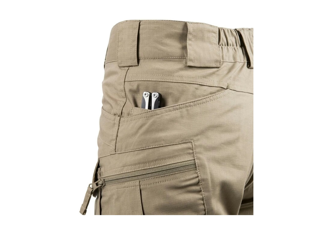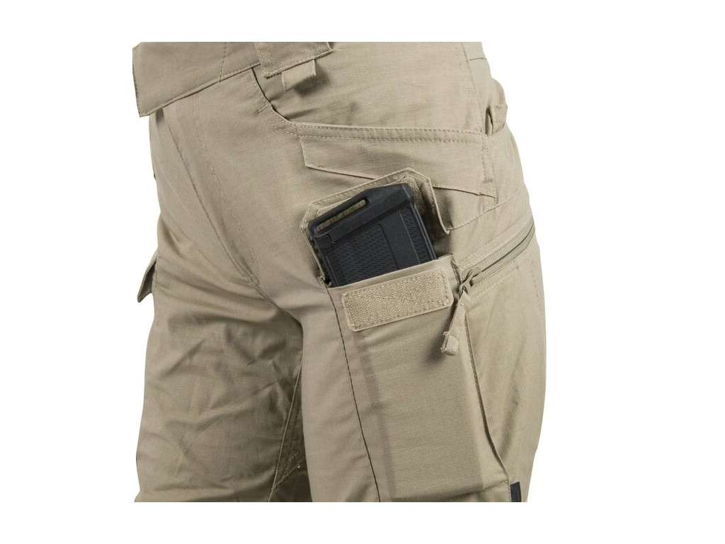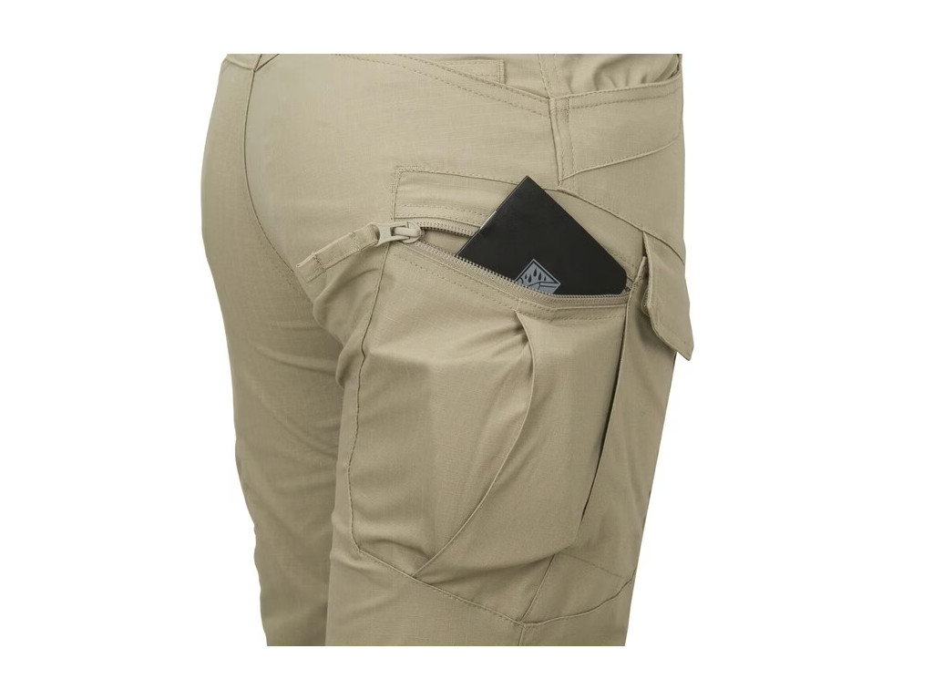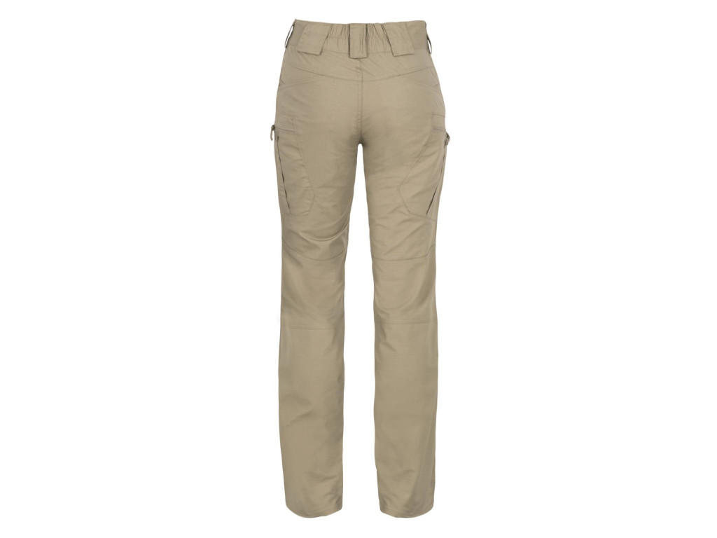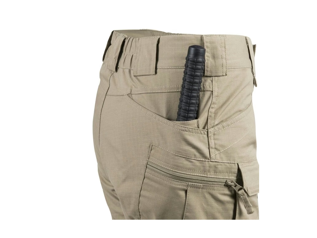 Dámské kalhoty Helikon UTP® (Urban Tactical Line) jsou navrženy tak, aby dokonale sedli na dámskou postavu. Součástí kalhot je pružná guma v oblasti kříže a elastický pás se suchým zipem pro přizpůsobení na každý typ postavy. Kalhoty také obsahují zesílená kolena s možností vložit chrániče, smyčky na klíče kompatibilní s D-ringem nebo karabinou, 2x přední kapsy ze zesílenými okraji (na klip od nožíku apod), 2x široké zadní kapsy se snadným přístupem - upravené pro použití dump mag, 2x slim zadní kapsy na zavírací nožík, baterku a podobně, 2x šikmé vnitřní kapsy na skryté nošení zásobníků, baterek a podobně, 2x stehenní cargo kapsy na zipy YKK na dokumenty, 2x stehenní úzké kapsy s klopnou na suchý zip (na nošení smartphone apod ).