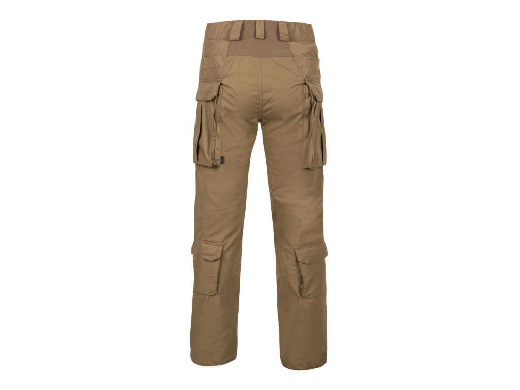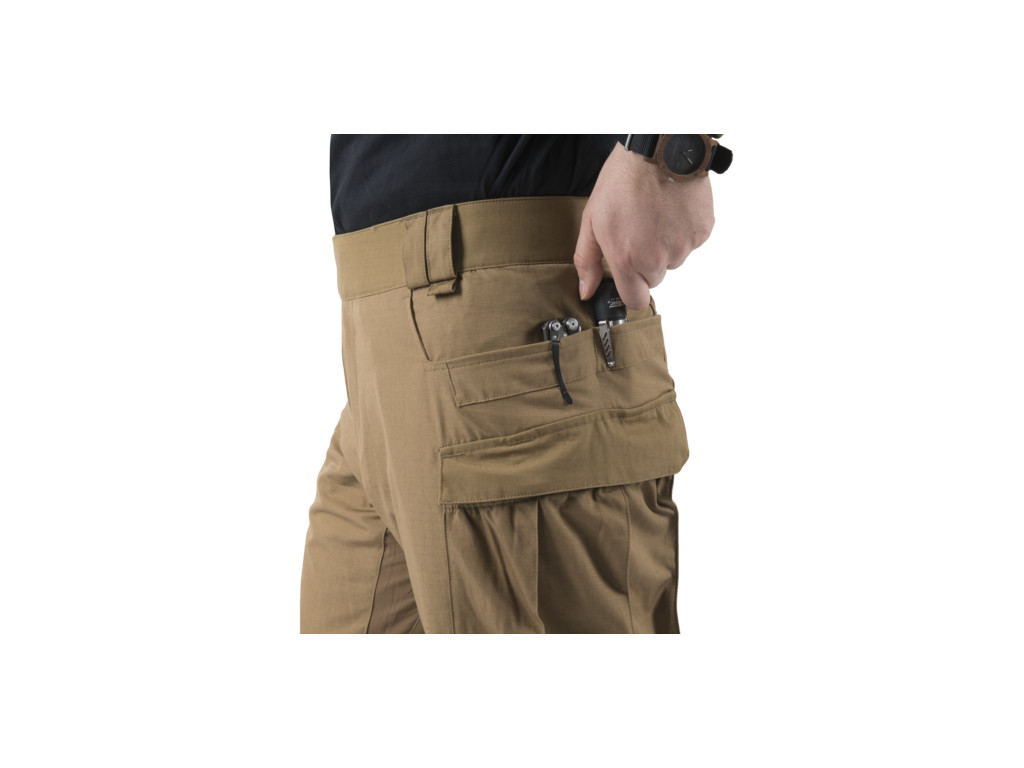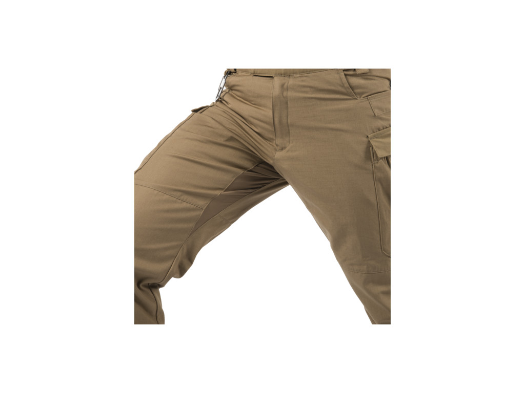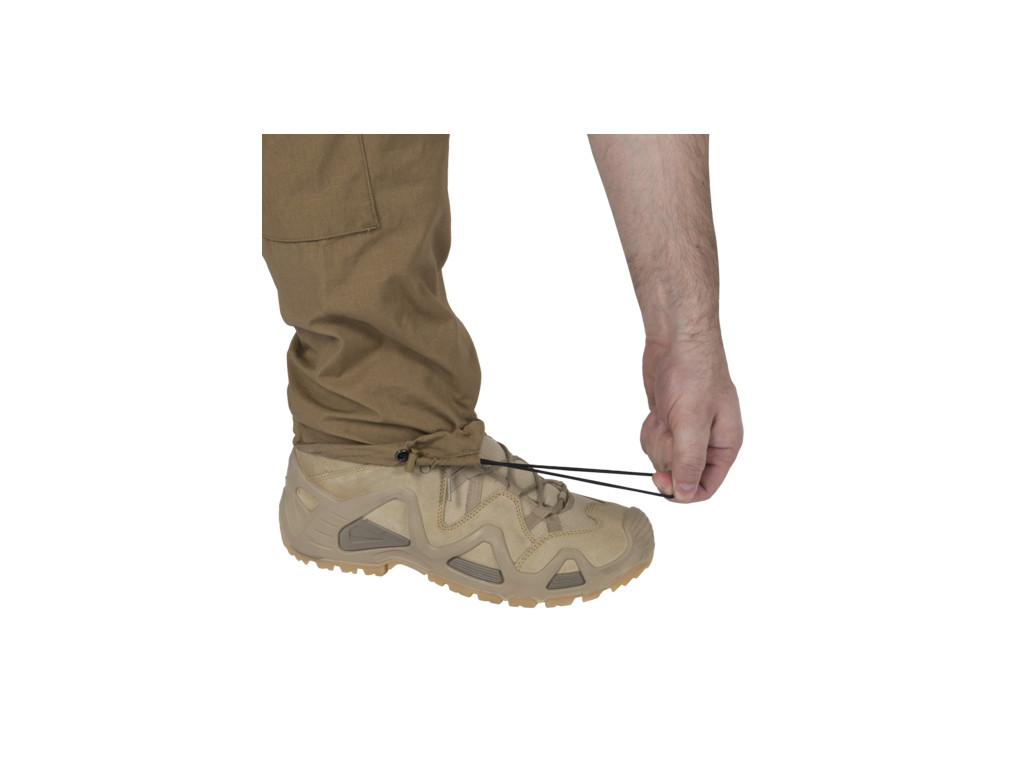 Kalhoty MBDU® jsou součástí naší modernizované polní uniformy Modern Battle Dress Uniform®. Tato uniforma byla vyrobena ze špičkových tkanin, pečlivě vybraných tak, aby poskytovaly vysokou odolnost i volnost pohybu, která je na bojišti nanejvýš důležitá. Kalhoty mají volný, profilovaný střih. Pas se zapíná pomocí suchého zipu, který umožňuje dodatečné nastavení. Široká poutka na opasek udrží opasek široký až 50 mm, a to i s pouzdry na zásobníky. V oblasti zad a v rozkroku jsou umístěny klíny z elastické tkaniny VersaStretch® pro větší volnost pohybu. Klasické bederní kapsy mají na okrajích výztuhy, aby se nepoškodily sponami na nože. Do přídavných zadních kapes se zesílenými okraji se vejdou větší předměty, třeba zásobník. Na stehnech jsou velké, prostorné cargo kapsy na zapínání. Na dolních končetinách jsou menší kapsy uzavíratelné páskou se suchým zipem, do kterých se vejdou základní nezbytnosti.