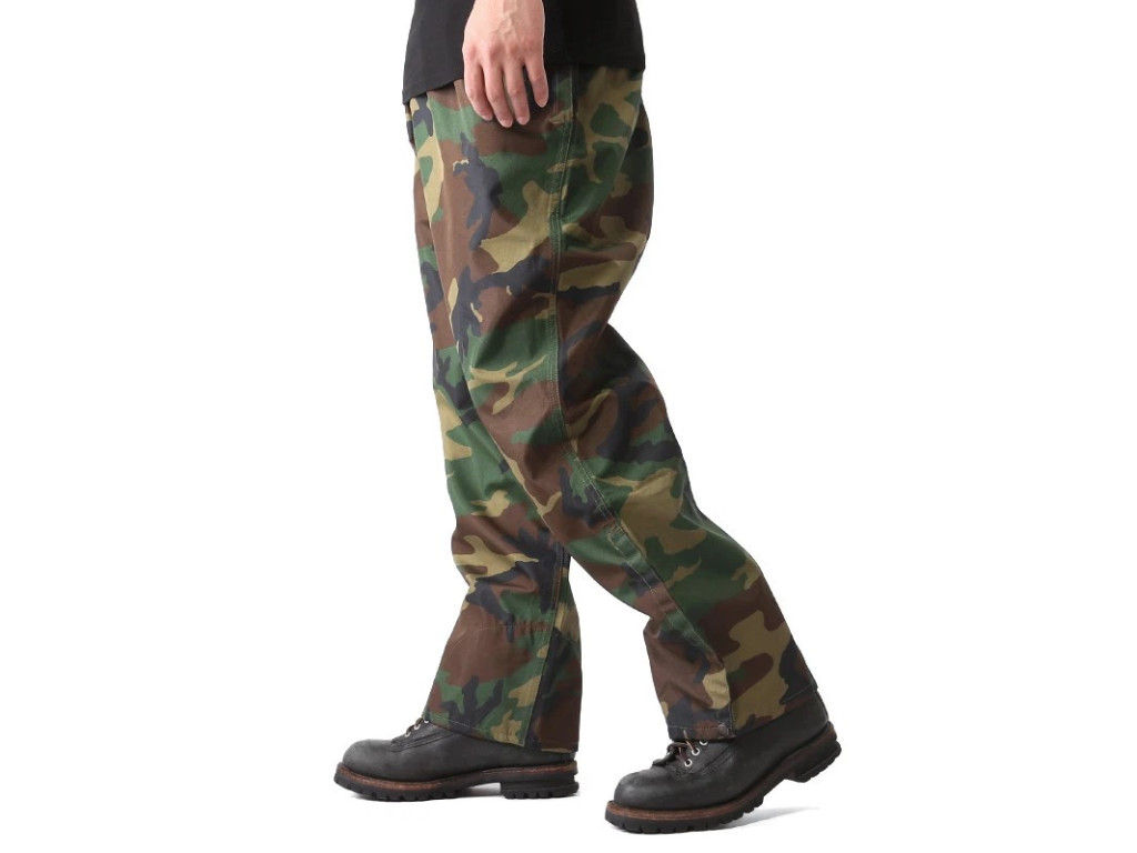 Robustní nepromokavé kalhoty v klasickém maskování Woodland jsou originální výstrojí italských ozbrojených sil, navrženou pro maximální ochranu v nepříznivých klimatických podmínkách. Jsou vyrobeny z vysoce odolného třívrstvého laminátu s integrovanou membránou. Tato konstrukce spolehlivě blokuje déšť i silný vítr, zatímco dovoluje tělu dýchat a odvádět přebytečnou vlhkost. Díky volnému střihu slouží jako svrchní „převleková“ vrstva, kterou lze snadno a rychle obléknout přes standardní polní uniformu.
