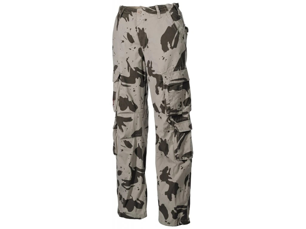 - Na každé nohavici z boku mají 2 nasazené kapsy, které se zapínají na druky