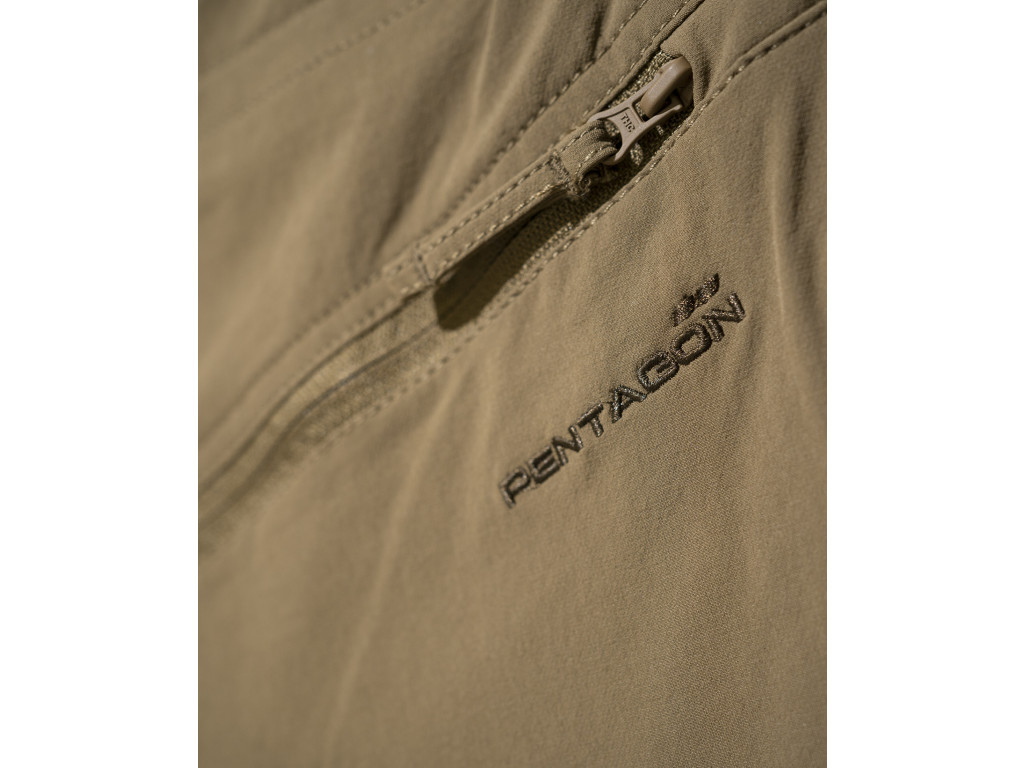 Kalhoty Renegade od výrobce Pentagon jsou pohodlné a lehké, vyrobené z elastického strečového materiálu s vodoodpudivou úpravou a výztuhami v oblasti kolen a kotníků. Díky strečovému materiálu se kalhoty dynamicky přizpůsobují každému pohybu. Kalhoty je možné nosit i při vyšších teplotách. Zapínání je na knoflík a YKK zip.