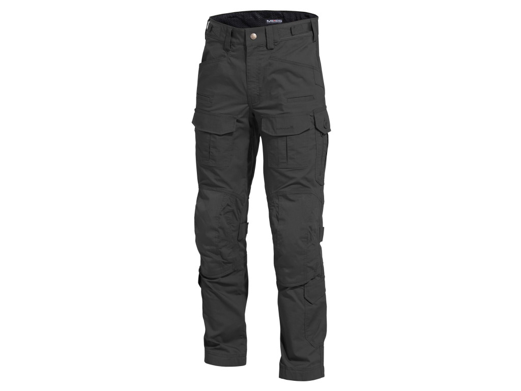 Taktické kalhoty vyrobené z odolného, dvoucestně strečového směsného materiálu v rip-stop úpravě, který disponuje teflonovou povrchovou úpravou. Kalhoty se zapínají kombinací druku, skrytého knoflíku a klasického zipu. Velikost kalhot v pase se dá dodatečně upravovat pomocí pásků se suchým zipem. Opasková poutka kalhot a oblast sedu jsou zesílené.