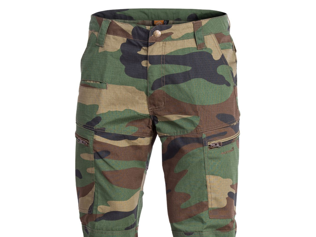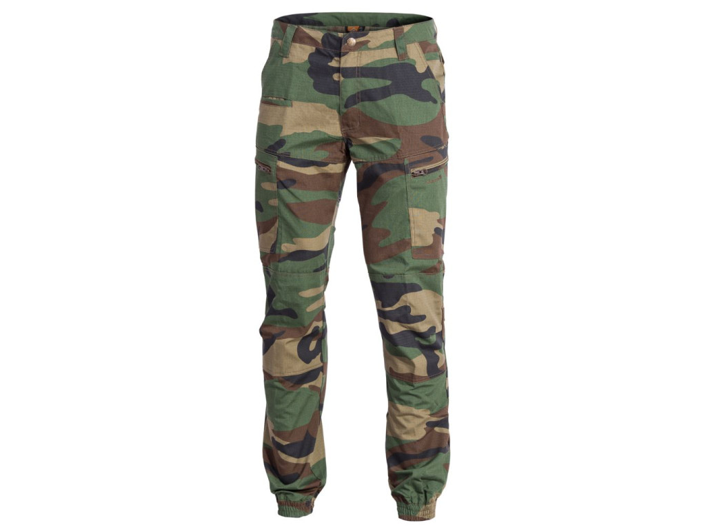 Kvalitní a pohodlné kalhoty nabízející několik taktických prvků. Zapínání kalhot je řešeno pomocí kombinace YKK zipu a spínacího knoflíku Prym®. V oblasti pasu naleznete celkem šest látkových poutek, které pojmou opasky do šíře 40 mm. Kalhoty disponují celkem sedmi kapsami. Kapsy na ruce jsou šikmo orientované a dostatečně hluboké. Vpravo od poklopce se nachází plochá kapsa ideální na vložení chytrého telefonu či klíčů. Na stehnech naleznete prostorné cargo kapsy uzavírané pomocí zipu. Poslední dvojice kapes je umístěná na hýždích, ta se zapíná chlopní se suchým zipem. Pro maximalizaci odolnosti jsou kalhoty na exponovaných místech zesílené trojitým šitím. Sed a kolena jsou opatřena dvojitou porcí látky. Nohavice jsou zakončeny pruženkou zabraňující vnikání nečistot do kalhot.