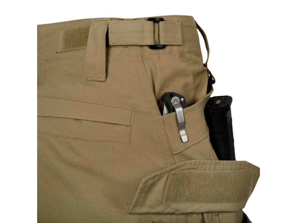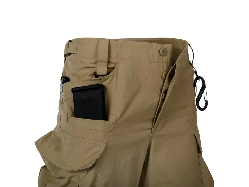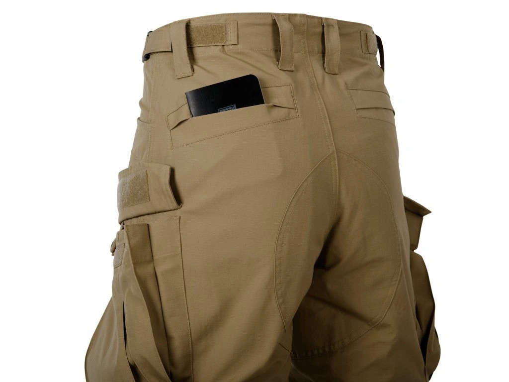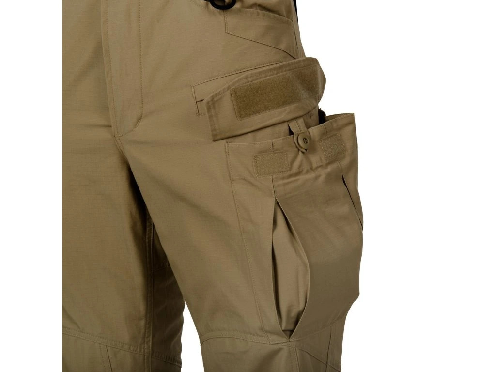Kalhoty HELIKON SFU NEXT jako další generace kalhot SFU Special Forces Uniform. Kalhoty řady PATROL LINE, které nabízejí snadný pohyb a promyšlený kapsový systém. Kombinují klasický vzhled, anatomický střih na míru a systém devíti snadno přístupných kapes. Kalhoty jsou nastavitelné v pase pomocí VELCRO pásků a mají nohavicové manžety. Kalhoty mají zesílenou sedací část a oblast kolen. Přední kapsy mají vyztužený lem pro uchycení klipů nářaďových systémů, nožů a třeba i svítilen. Postranní objemné CARGO kapsy se uzavírají na knoflíky a ještě suchý zip, tak aby udržely větší a těžší předměty. Kolení část obsahuje kapsy pro vložení chráničů nízkého profilu