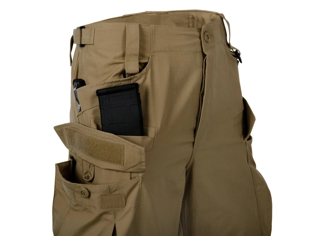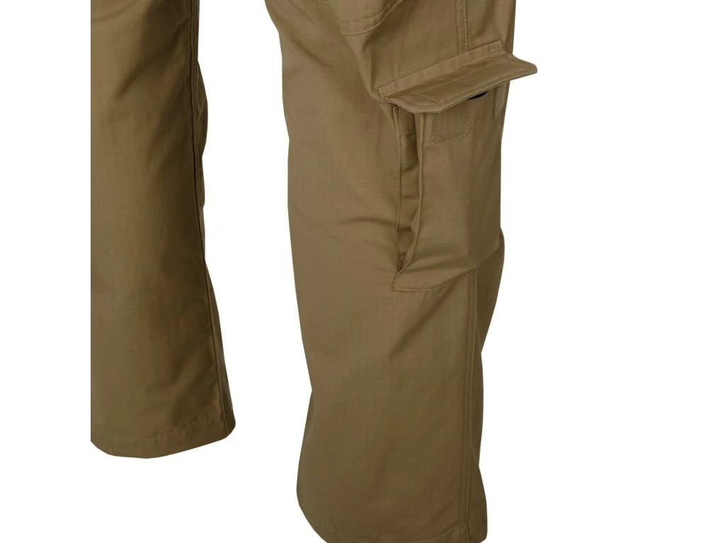 Kalhoty HELIKON SFU NEXT jako další generace kalhot SFU Special Forces Uniform. Kalhoty řady PATROL LINE, které nabízejí snadný pohyb a promyšlený kapsový systém. Kombinují klasický vzhled, anatomický střih na míru a systém devíti snadno přístupných kapes. Kalhoty jsou nastavitelné v pase pomocí VELCRO pásků a mají nohavicové manžety. Kalhoty mají zesílenou sedací část a oblast kolen. Přední kapsy mají vyztužený lem pro uchycení klipů nářaďových systémů, nožů a třeba i svítilen. Postranní objemné CARGO kapsy se uzavírají na knoflíky a ještě suchý zip, tak aby udržely větší a těžší předměty. Kolení část obsahuje kapsy pro vložení chráničů nízkého profilu