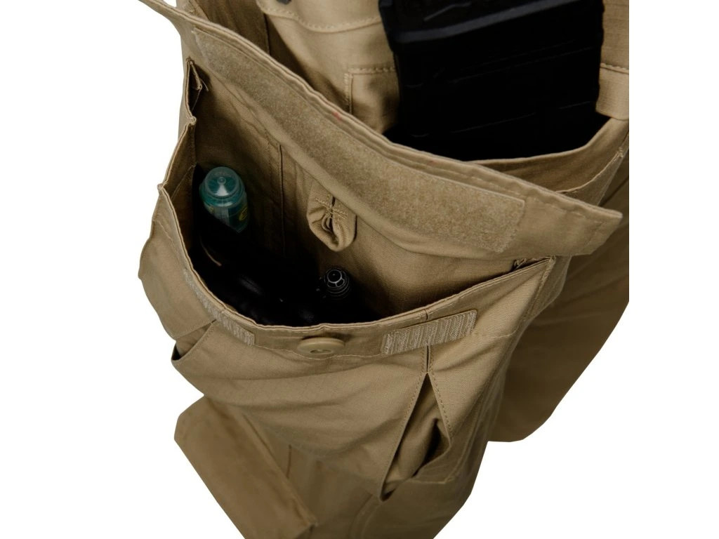 - Dvě stehenní objemné CARGO kapsy se uzavírají na knoflíky a ještě suchý zip, tak aby udržely větší a těžší předměty