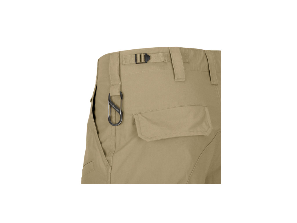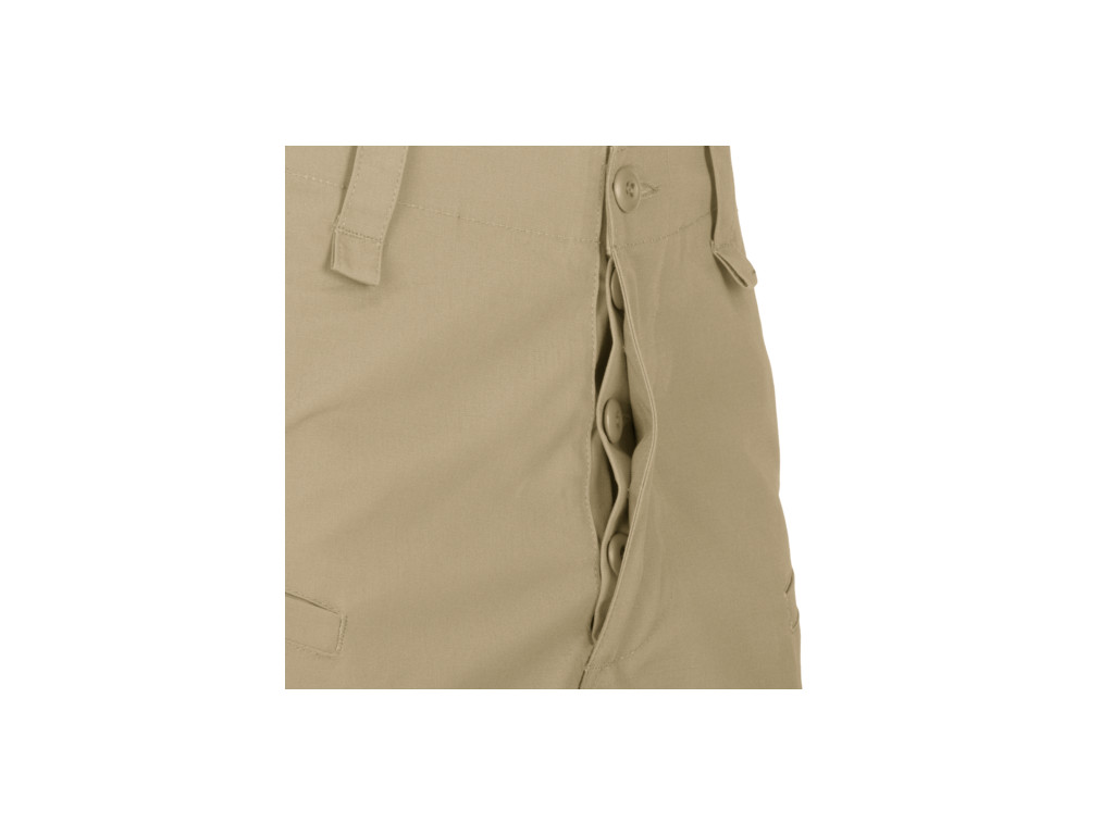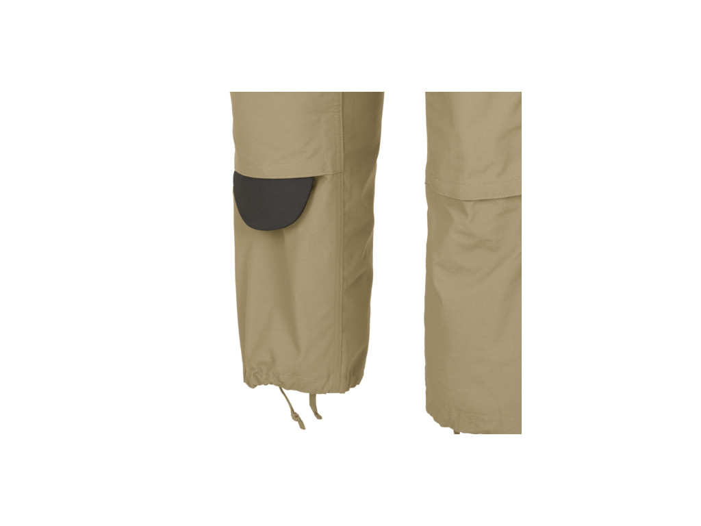 - Dvě cargo kapsy na stehnech s klopami na háčky a smyčky, knoflíkem a stahovací šňůrkou