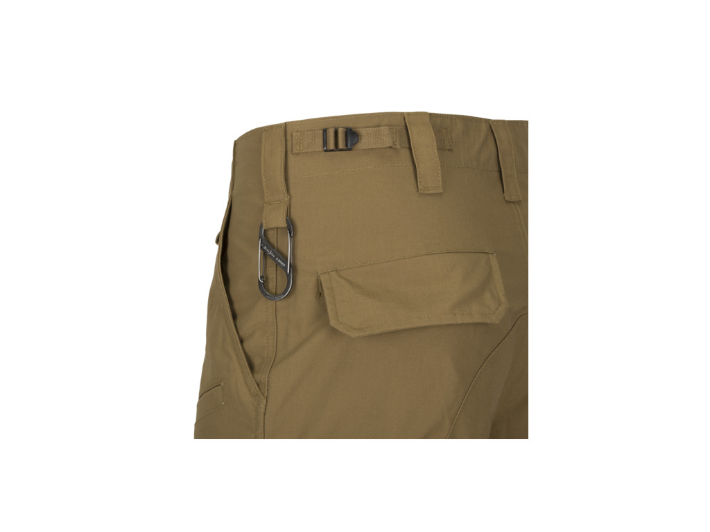 - Dvě cargo kapsy na stehnech s klopami na háčky a smyčky, knoflíkem a stahovací šňůrkou
