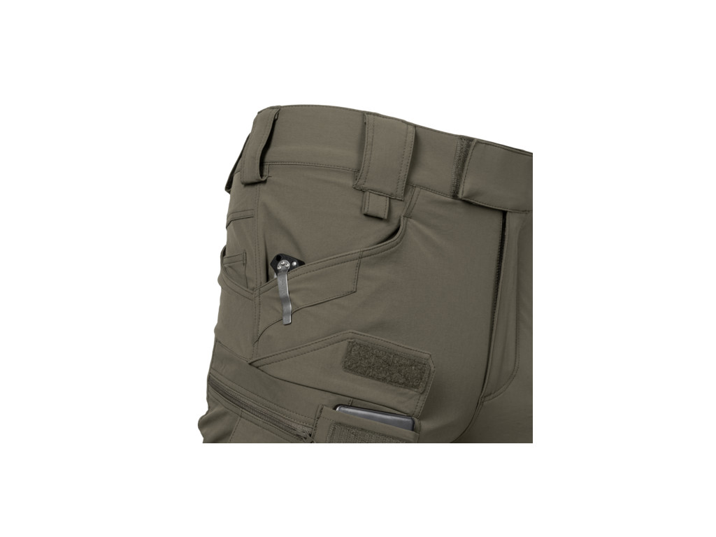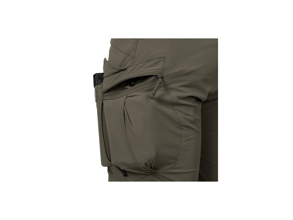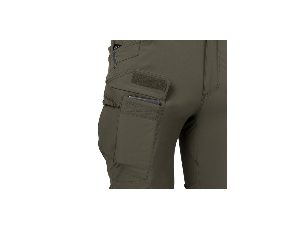 Mnoho našich zákazníků se pohybuje nejen ve městech, ale i na venkově. Na základě jejich pozitivních ohlasů na používání kalhot UTP® vytvořili Helikon návrháři jejich speciální outdoorovou verzi a hle, zde jsou Outdoorové taktické kalhoty®. Zachovaly si všechny funkční vlastnosti svého předchůdce, ale některé detaily byly upraveny tak, aby lépe vyhovovaly použití v terénu. Použitá tkanina je lehká, pružná a skvěle prodyšná. Skvěle se hodí pro outdoorové aktivity. Chrání před lehkým deštěm a větrem. Rychle schne. Střih a uspořádání kapes zachovávají civilní vzhled a neprozrazují majitele. Konstrukce OTP® umožňuje nosit veškeré nezbytné vybavení a anatomický střih nebrání v pohybu. Elastický pas a zapínání na suchý zip umožňují určitou míru nastavitelnosti v rámci velikosti. Velká poutka na opasek umožňují použití širokých opasků (EDC, UTL® nebo Cobra®, až do šířky 50 mm). Džínový střih na zadní části kalhot zabraňuje jejich sklouzávání dolů. Rozložení kapes umožňuje rozložit zátěž blízko středu hmotnosti & kolem boků a pasu.