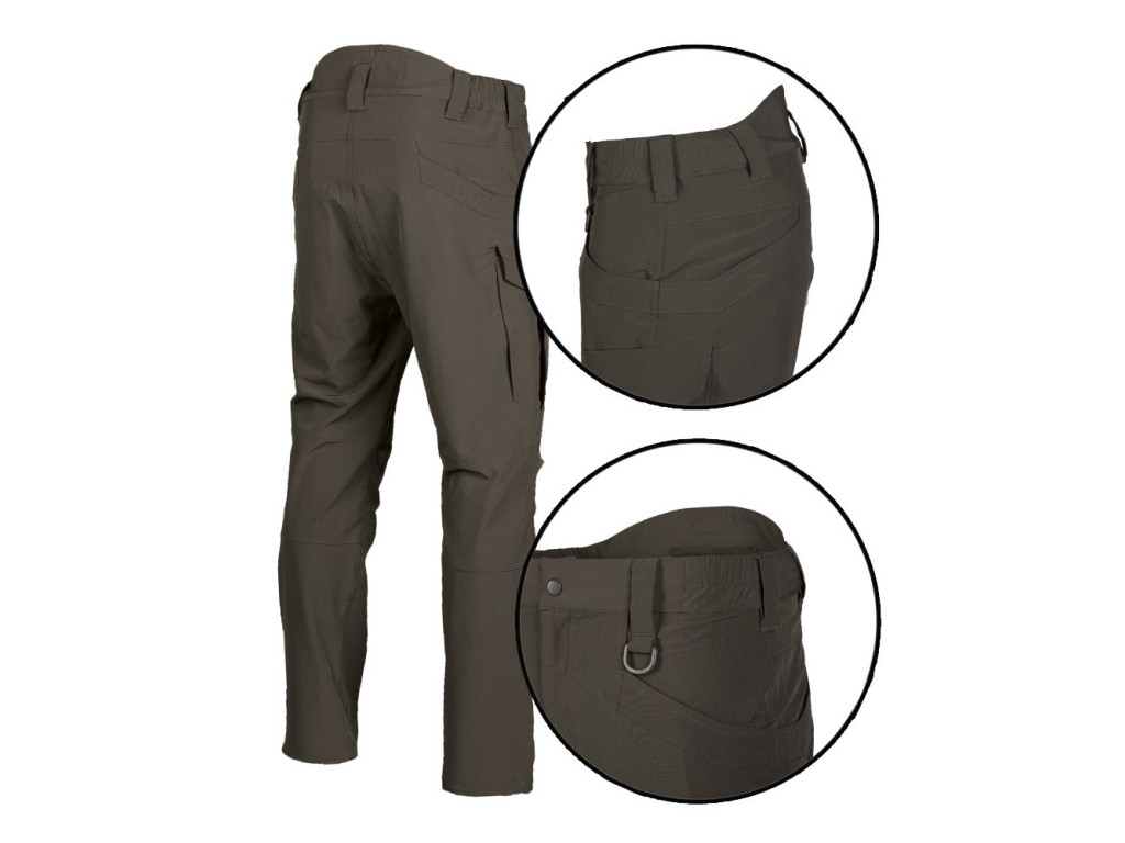 Taktické kalhoty ze softshellového materiálu, který je prodyšný a rychle schne. Anatomický střih s užšími nohavicemi a elastickými vsadkami.