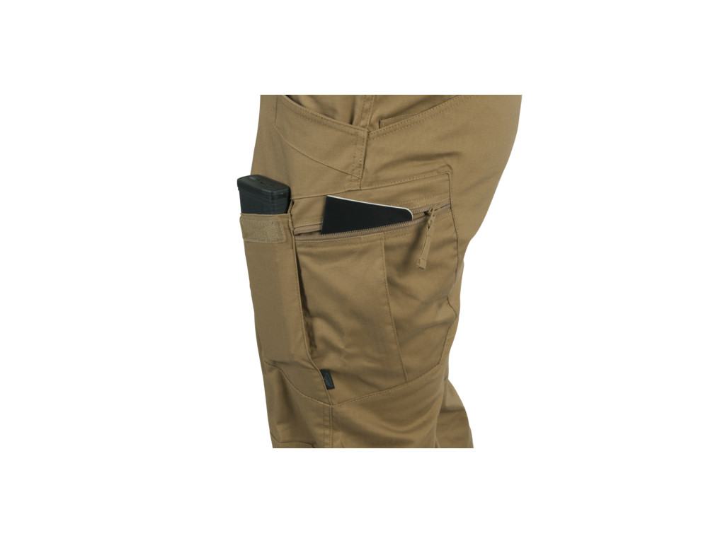 Čím jsou tyto kalhoty tak výjimečné? Střih a uspořádání kapes, použitých u těchto kalhot mají dostatečně civilní vzhled, aby si zachovaly nenápadnost, a zároveň i plnou funkčnost bojových kalhot, které jsou schopné pojmout základní taktické potřeby a zároveň nekolidují s lidskou anatomií. Elastický pas na suchý zip umožňuje snadné nastavení. Široká poutka na opasek umožňují použití až 50 mm širokého opasku, včetně všech našich taktických opasků. Navíc použitý střih, klasický pro modré džíny, snížil tendenci sjíždět dolů při používání. Promyšleným rozložením kapes lze vybavení umístit blízko těžiště, kolem boků a pasu. Okraje předních a zadních kapes jsou zesílené, aby odolaly neustálé manipulaci svítilen nebo klipů na nože. Dvě přední kapsy uzavíratelné na suchý zip jsou dostatečně velké na to, abyste v nich mohli nosit chytrý telefon nebo zásobníky. Stehenní kapsy na zip vypadají ploše, ale jejich konstrukce umožňuje snadné nošení pouzder nebo peněženek. Na míru vytvořené vnitřní kapsy jsou připraveny na použití neoprenových chráničů kolen.