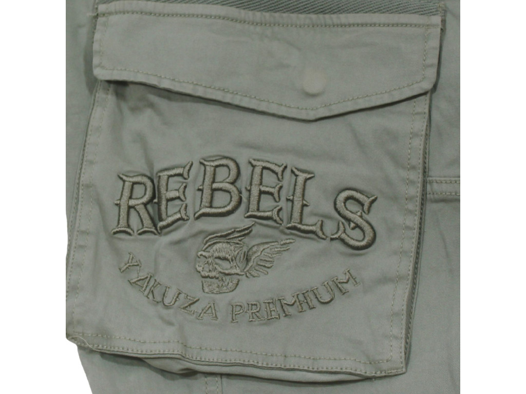 Styl, funkčnost a pohodlí do jednoho výrazného kousku. Tyhle kalhoty nejsou jen o vzhledu – jejich lehčí materiál, volný střih a praktické detaily z nich dělají ideálního parťáka pro každodenní nošení. Na přední straně najdeš dvě klasické kapsy. Boční strany zdobí dvě cargo kapsy s klopami a výšivku „REBELS“. Na zadní straně jsou dvě kapsy na patent, nad nimi stylový kožený štítek „Bad Villains“ s lebkou a křídly. Uvnitř pasu najdeš výrazný pruh s nápisem Yakuza Premium, což podtrhuje prémiový charakter celého modelu.