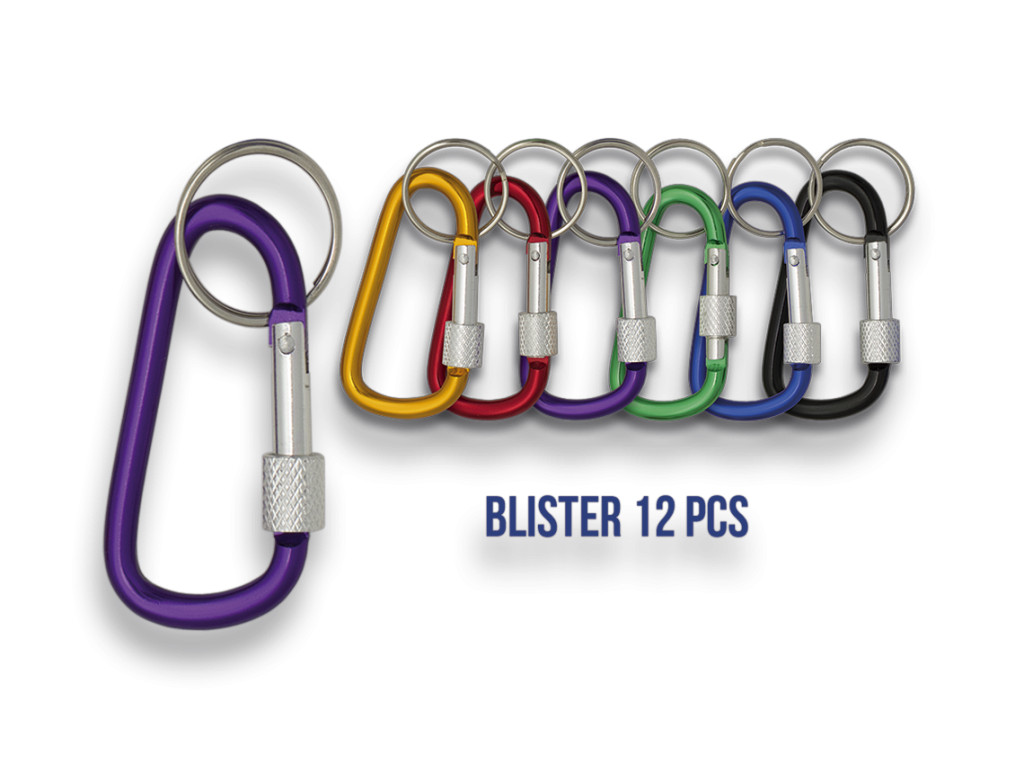 Lehká, aluminiová karabina se šroubovacím závitem a kroužkem na klíče.
