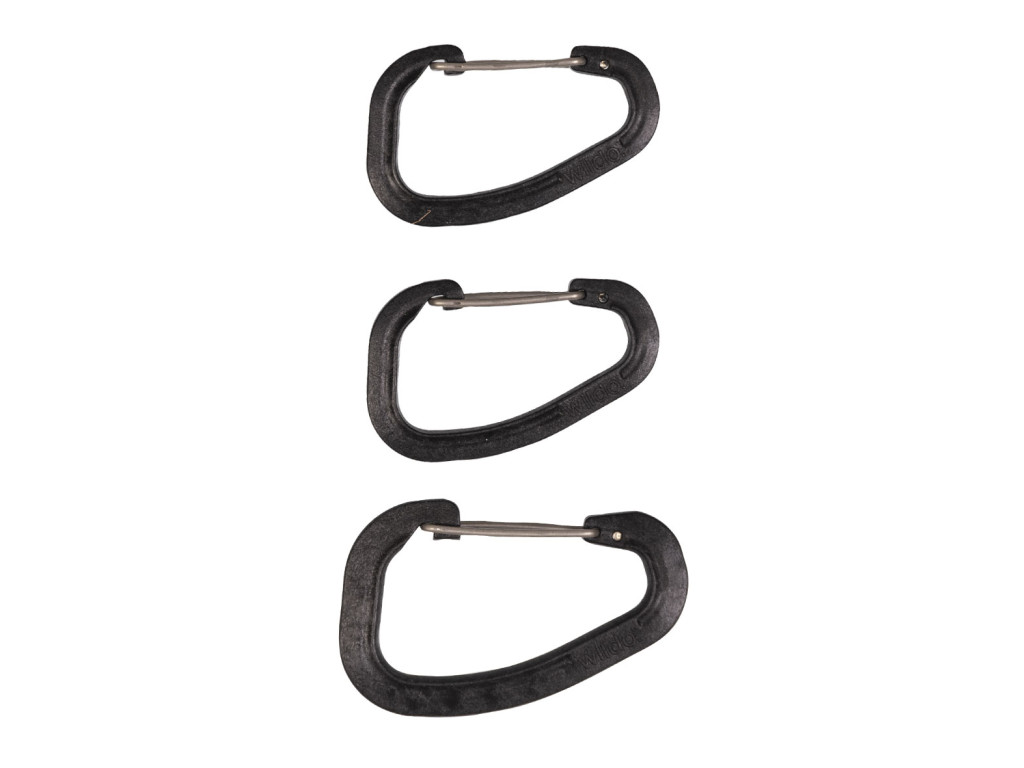Sada 3 kusů pomocných plastových karabin s drátovým zámkem.