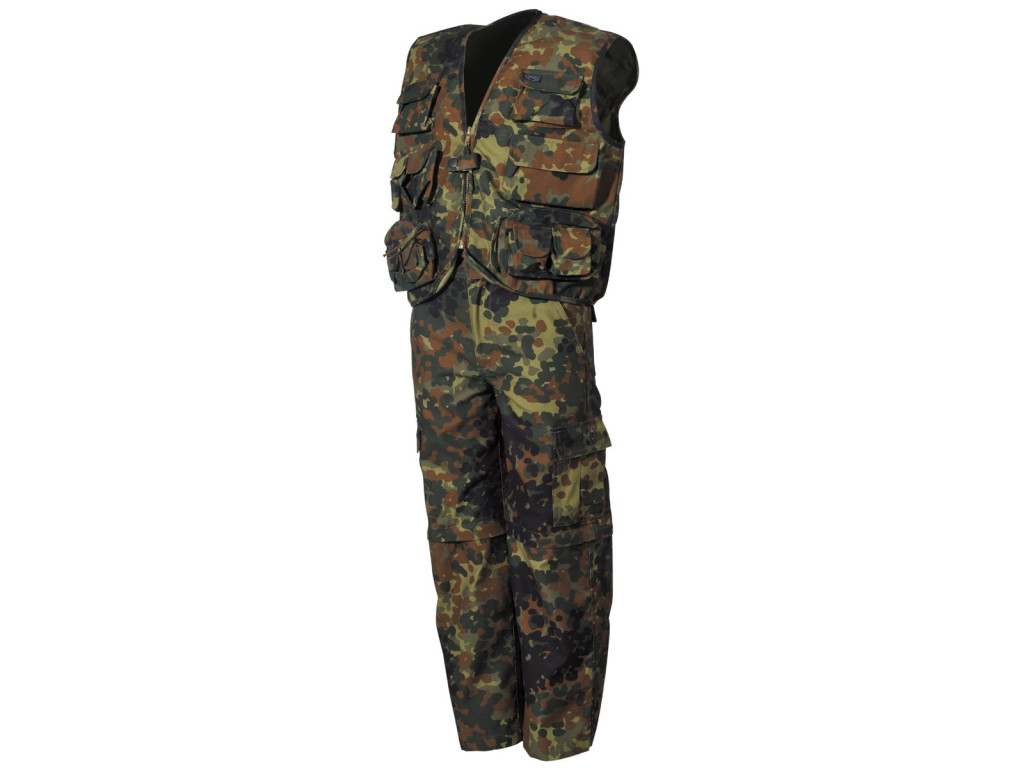 Dětský letní komplet - vesta a kalhoty. Lehká vesta se zapínáním na zip. Na přední straně veliké množství praktických větších a menších kapes krytých légou s druky nebo zapínacích na zip, které Vaše dítě využije na uložení všech důležitých věcí. Kalhoty jsou ve střihu BDU s odepínacími nohavicemi v kolenou, velmi praktické v létě. Dvě velké skládané boční kapsy kryté légou s knoflíky.