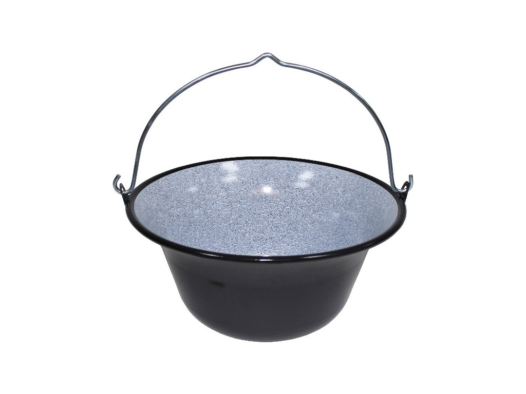 Klasický kempinkový smaltovaný kotlík vhodný pro vaření nad ohněm, na plynových vařičích...