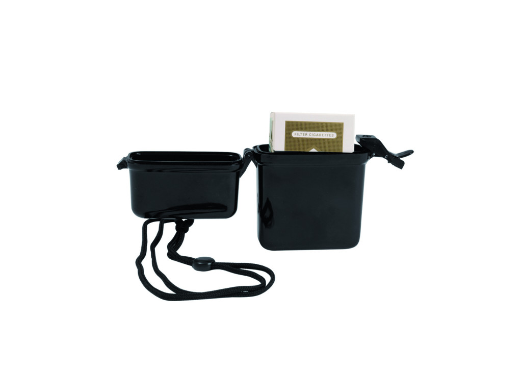 Lehká plastová krabička s vodotěsným uzávěrem. Vhodná například pro uložení drobných předmětů (např. bankovky, drobné mince, cigarety). Součástí je popruh pro nošení na krku.