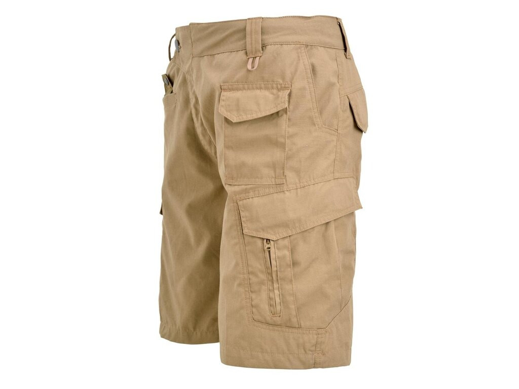 Pánské taktické kraťasy disponují mnohými taktickými prvky, které jsou typické pro využití ozbrojenými složkami. Jenže jejich civilní styl je předurčuje pro širší spektrum uživatelů. Navzdory své odolnosti zůstávají kraťasy Advanced Tactical poměrně lehké. Jsou celkově kvalitně provedené včetně takových detailů, jako jsou knoflík a zip na poklopci. Součástí kraťasů je také praktické poutko na další vybavení umístěné vepředu vlevo na opaskovém průvleku. To slouží kupříkladu na zavěšení klíčenky. Zmíněné kapsy na ruce mají vyztužené okraje pro připevnění dalšího outdoorového a taktického vybavení, jmenovitě zavíracího nože, multitoolu, svítilny a podobně.