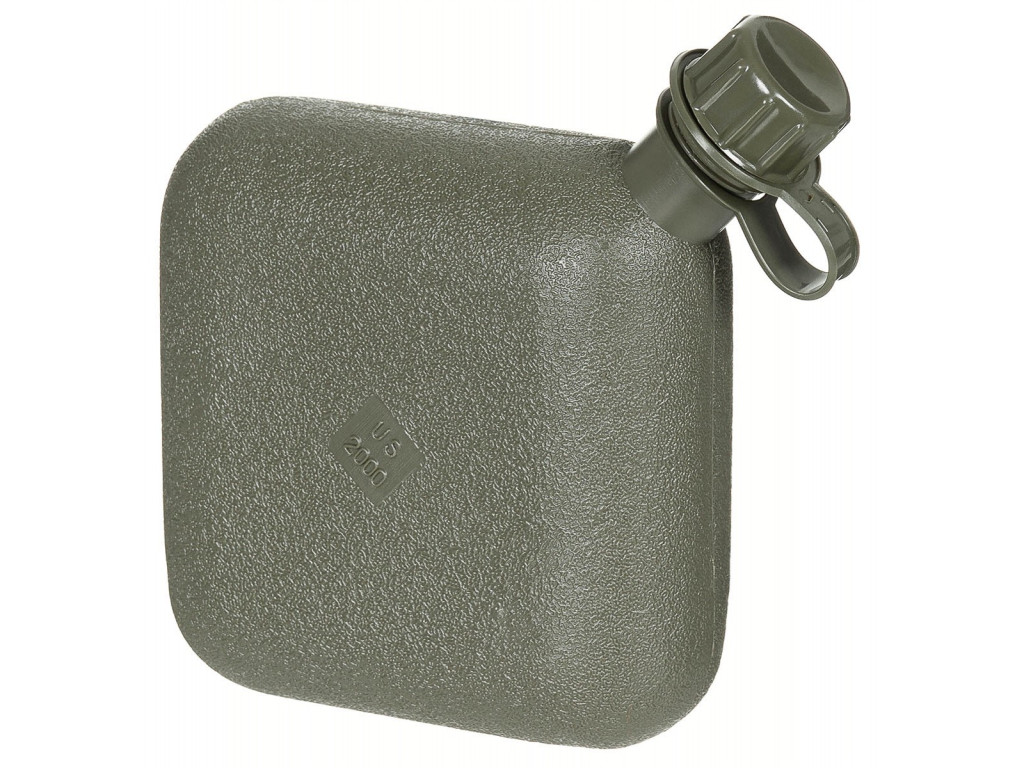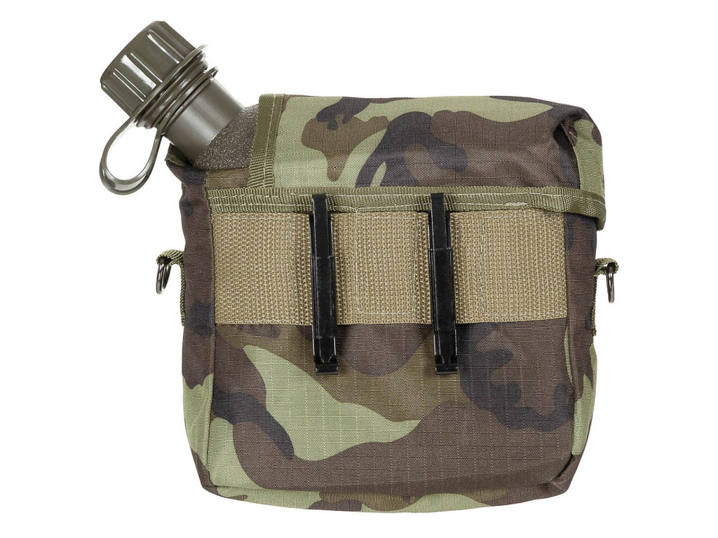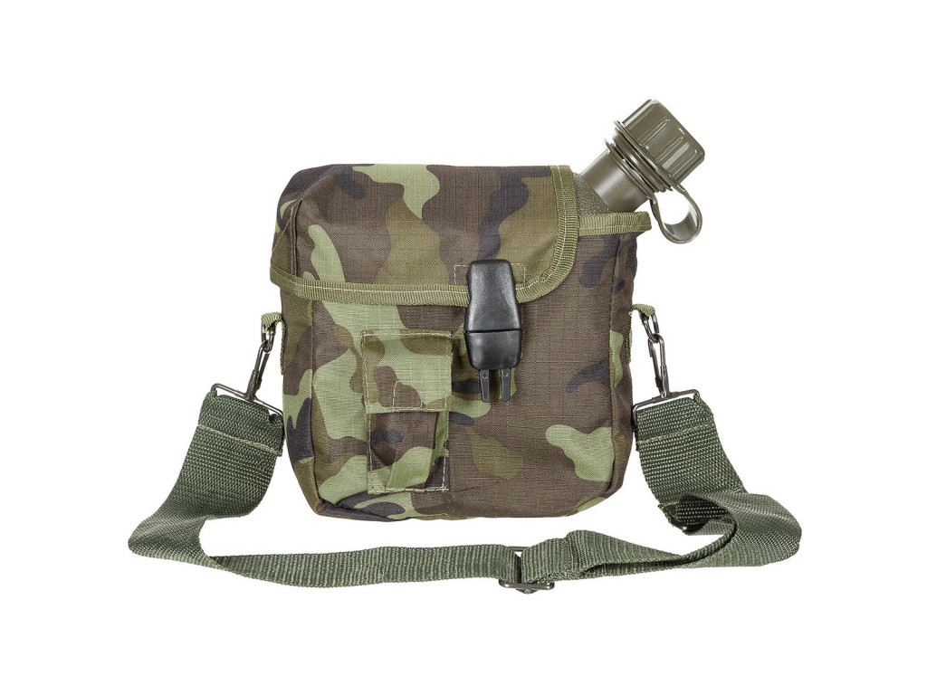 Plastová láhev na vodu o objemu 2 qt. (necelé 2 litry), včetně přepravního obalu, který lze pomocí nastavitelnému popruhu zavěsit přes rameno. Popruh lze díky 2 karabinkám odepnout. Pouzdro má na zadní straně 2 ALICE klipy, můžete ho tedy podle potřeby připnout na batoh, tašku případně taktickou vestu apod.