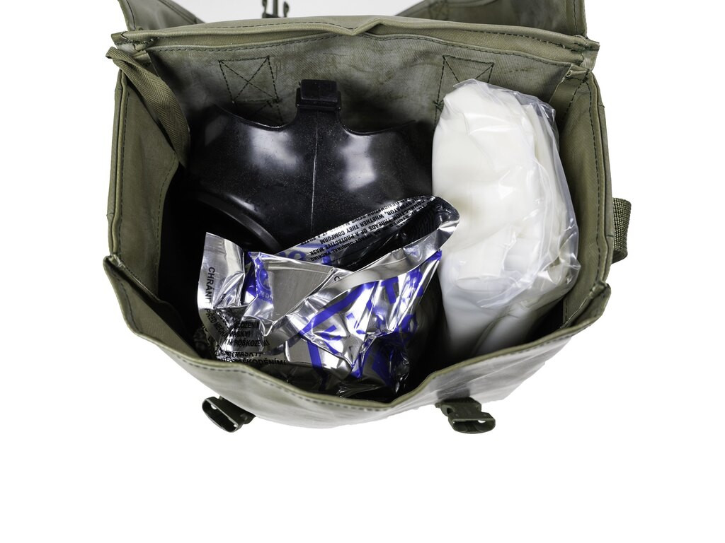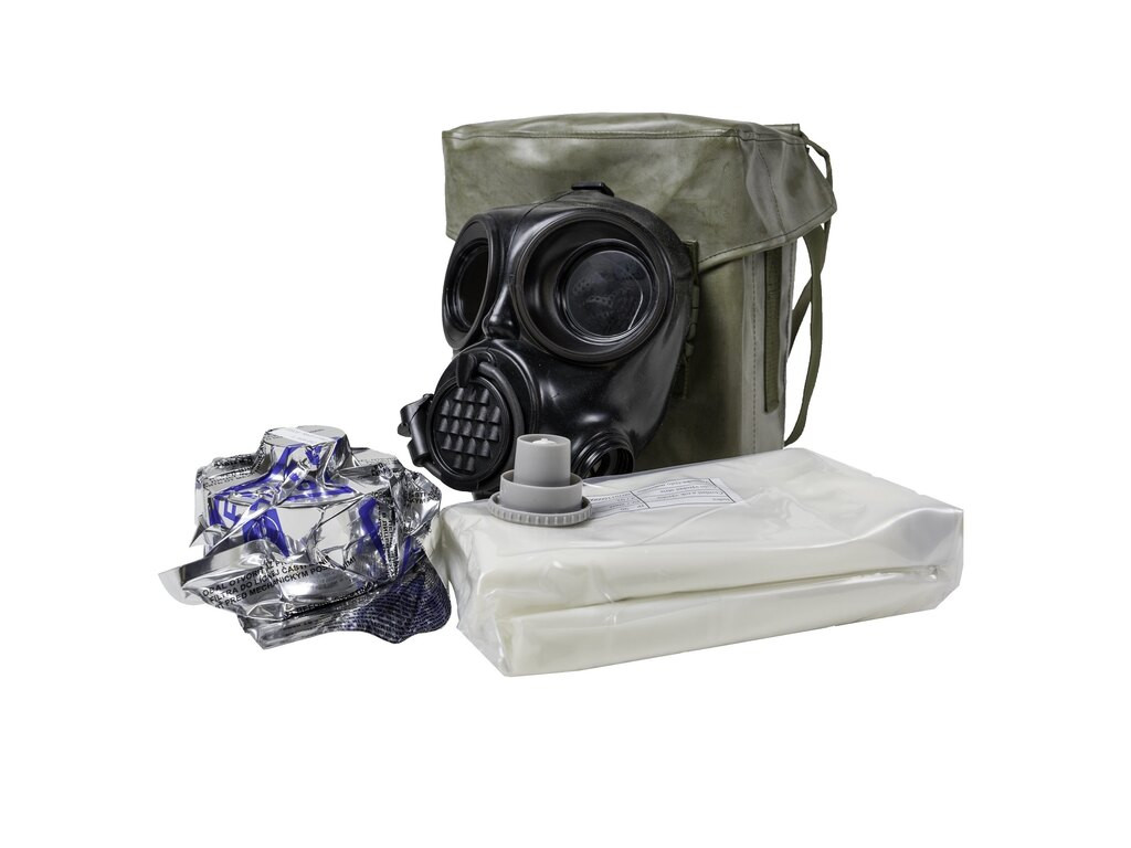- Plynová maska obsahuje použitý filtr (nemusí mít víčko), použitou tašku (špinavou, podepsanou, prasklé), použitý jednorázový plášť různých typů (lze ji vybalit) a ventil na polní láhev (různé typy)