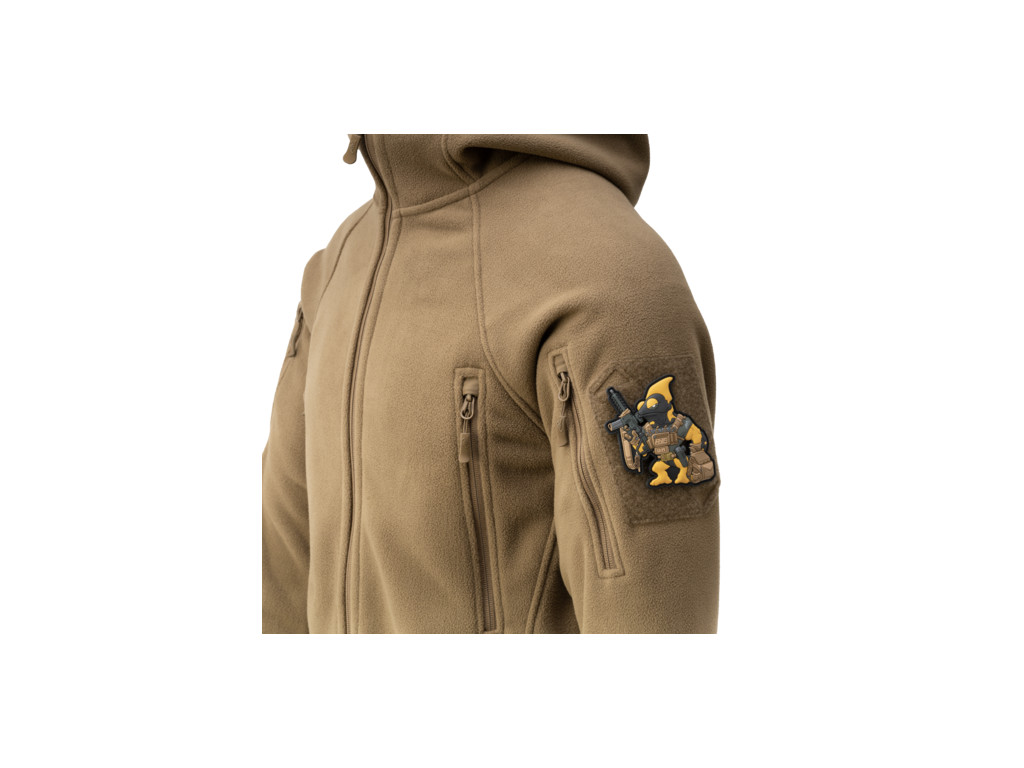 Vylepšená verze velmi oblíbené bundy PATRIOT od značky HELIKON-TEX. Na její výrobu byl použit nový materiál Hybrid Fleece o gramáži 340 g/m2, který při snížení hmotnosti a zlepšení prodyšnosti nabízí stejně skvělou hřejivost jako předchozí model bundy. Hybrid Fleece tvoří dvě vrstvy: vnější je jako klasický flís, vnitřní vrstva připomíná "vaflový" materiál použitý na mikinách Alpha. Oproti přechozí verzi se změnil počet i umístění kapes. Pro zlepšení odvětrávání přebytečného tepla je bunda v podpaží opatřena ventilačními otvory.