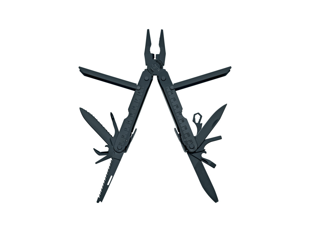 - Funkce: Kleště, štípací kleště na drát, zubatá čepel, otvírák na konzervy, bodec, pila na dřevo (dvojzubá), křížový šroubovák, pilník, otvírák na lahve, plochý šroubovák, nůž, otvírák na matice/šrouby.